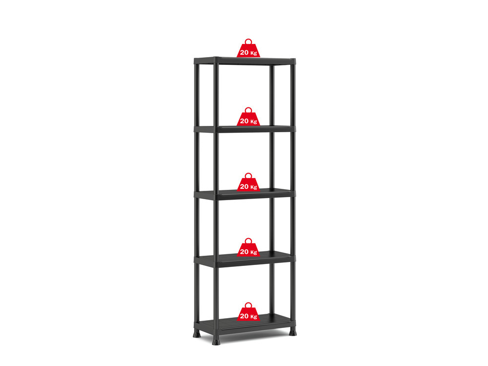 Dotaz na produktRegál PLUS s 5 policemi je ideálním řešením pro úklid a organizaci vaší garáže, sklepa nebo půdy. Tento regál se vyznačuje pevnou a odolnou konstrukcí a díky zvýšeným nohám pomáhá udržet uložené věci mimo podlahu. Materiál odolný vůči hnilobě, korozi a rzi. Skladové plastové regály si můžete přizpůsobit podle svých potřeb díky posunovatelným policím s nosností každé police 20 kg. Regál s 5 policemi si můžete i přišroubovat ke zdi (součástky v balení) a díky spojovacímu systému k němu připevnit další regály z řady PLUS. VLASTNOSTI A VÝHODY: každá z 5 poliček unese až 20 kg snadná montáž bez potřeby nářadí pevný a efektivní systém spojování polic - regály se mezi s sebou dají spojovat v pevný regálový systém balení obsahuje i součástky pro přimontování ke zdi přizpůsobíte si prostor přesně na míru (police jsou posunovatelné nahoru a dolů) zvýšené nohy pro lepší stabilitu a snadnější úklid (umožňují zametení podlahy pod regálem) vhodný do skladů, ale i domácnosti, garáží apod.