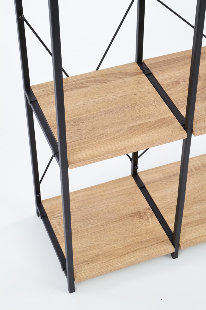 Regál je vyroben ze dýhované desky a kovu. Regál je rozdělen do 6 úložných prostorů, ve kterých si můžete vystavit nejrůznější předměty.