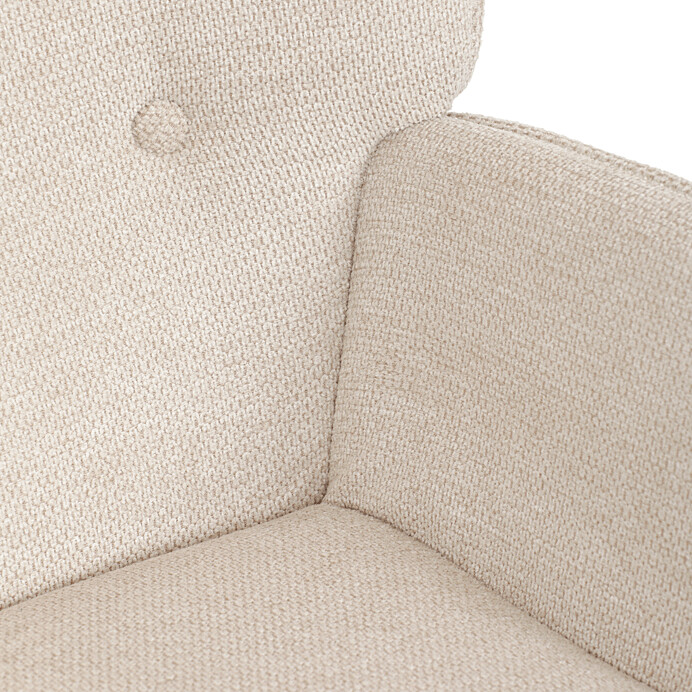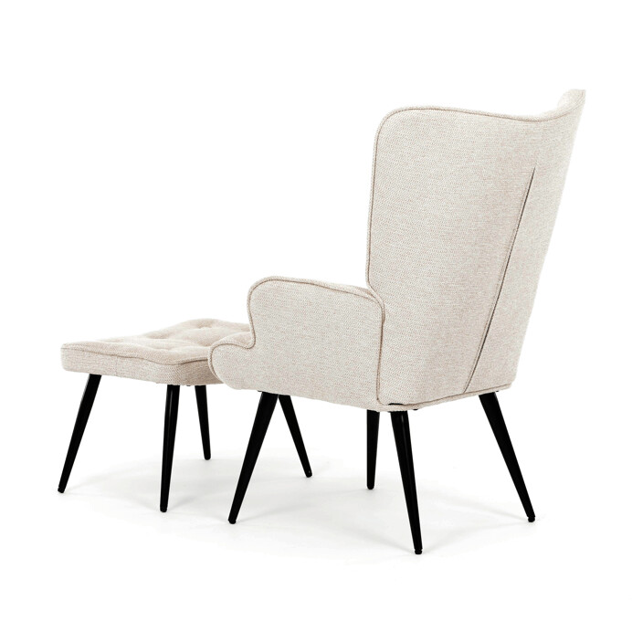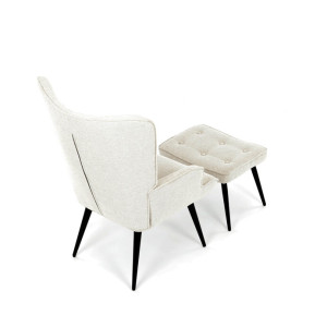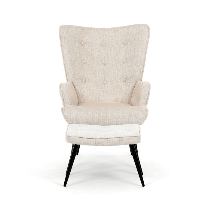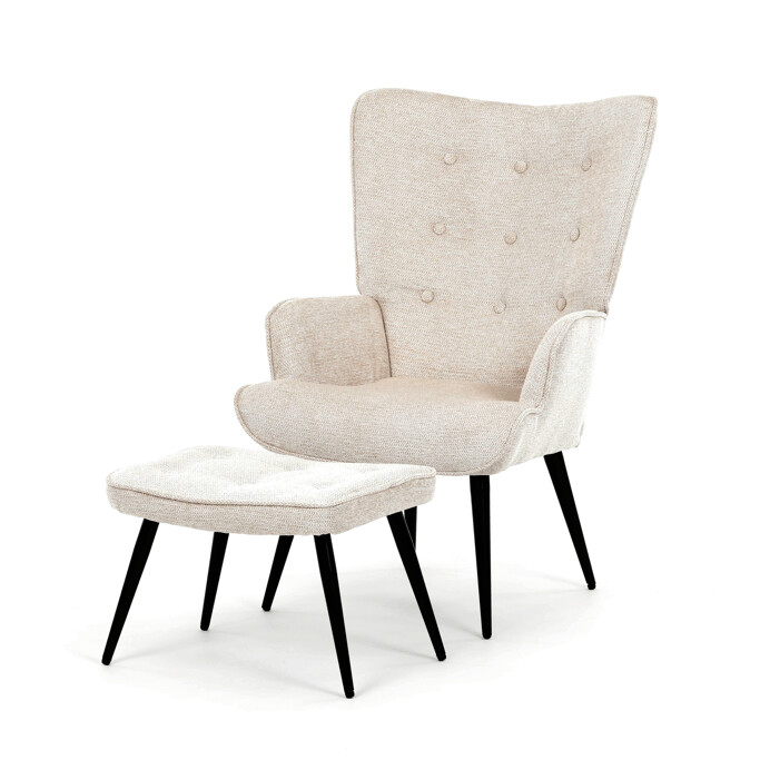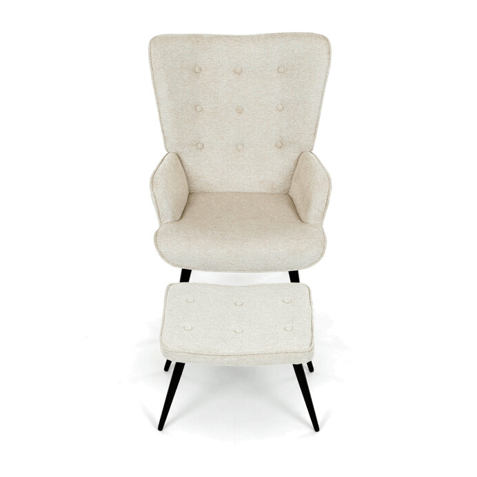 Relaxační křeslo s podnožkou v béžovém odstínu je potažené vodoodpudivou látkou, která usnadňuje údržbu a zvyšuje odolnost proti polití. Čalounění je příjemné na dotek a díky prémiové tkanině nabízí dlouhodobý komfort i při delším sezení. Křeslo disponuje pevnými černými kovovými nohami, které zajišťují stabilitu a bezpečnost. Součástí je také bonusový taburet se stejným potahem a designem, který umožňuje pohodlné opření nohou a doplňuje relaxační zážitek. Ergonomicky tvarované područky podporují správnou polohu paží a přispívají k celkovému pohodlí.