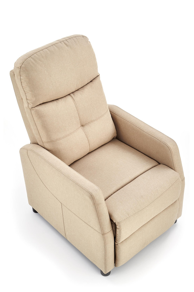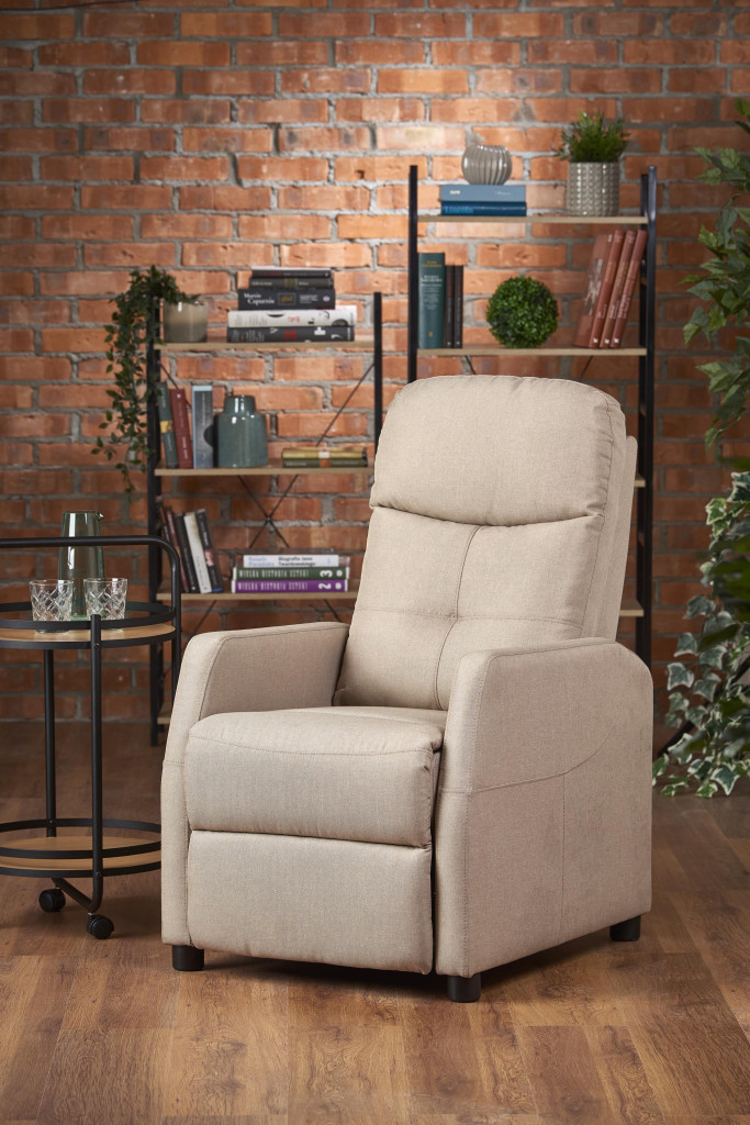 Relaxační křeslo je potaženo tkaninou. Křeslo slouží k relaxaci a pohodlnému oddychu.