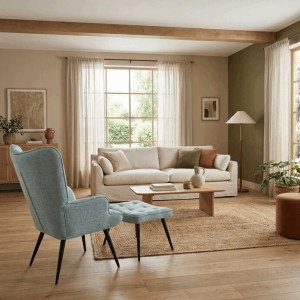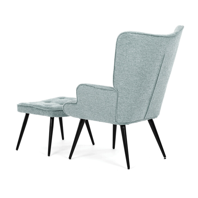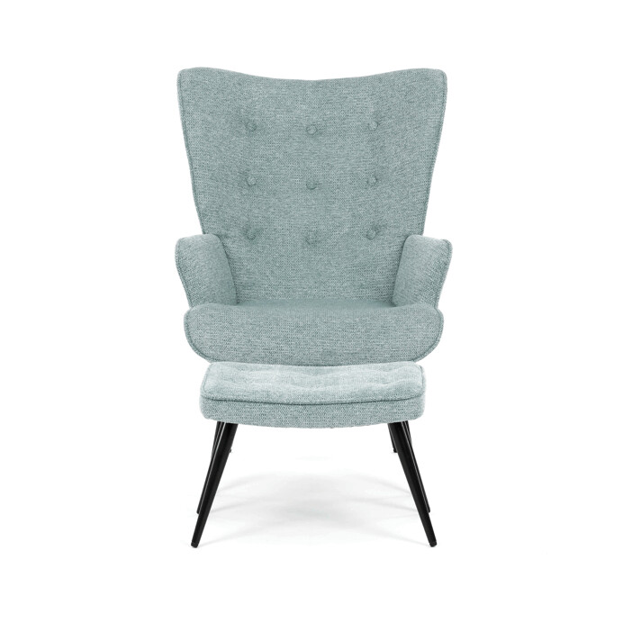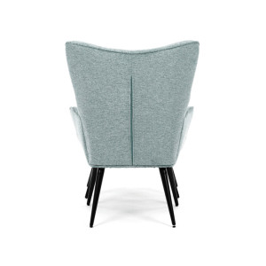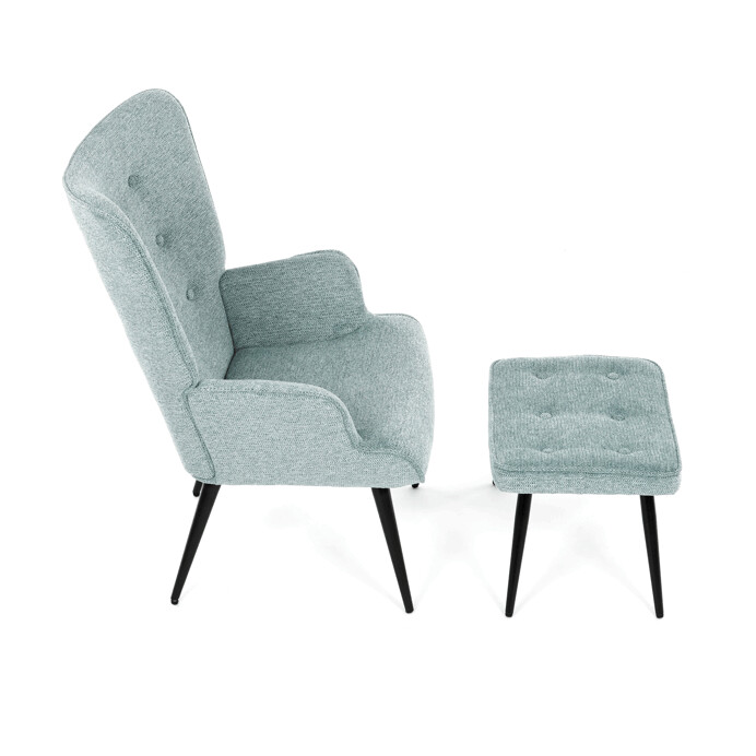 Relaxační křeslo s podnožkou v modré barvě je potaženo vodoodpudivou prémiovou látkou, která usnadňuje údržbu a zvyšuje odolnost vůči polití. Pevné černé kovové nohy zajišťují stabilitu a dlouhou životnost. Křeslo nabízí pohodlné opěradlo s integrovanými područky, které podporují správnou ergonomii při relaxaci. Bonusový taburet s odpovídajícím čalouněním umožňuje pohodlné opření nohou a doplňuje celkový komfort. Design s jemným prošitím a mírně zaoblenými tvary vytváří příjemný vizuální efekt vhodný do moderních i klasických interiérů.