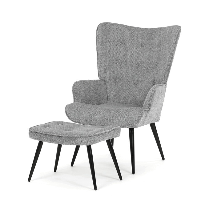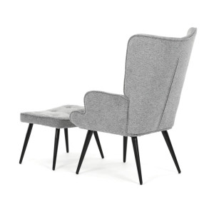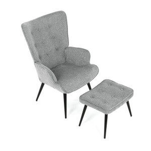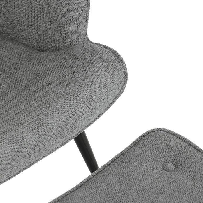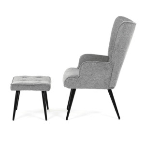 Relaxační křeslo s podnožkou v šedé barvě je potažené vodoodpudivou prémiovou látkou, která usnadňuje údržbu a zvyšuje odolnost proti polití. Pevná kovová podnož v černém provedení zajišťuje stabilitu a dlouhou životnost. Křeslo disponuje pohodlnými čalouněnými područkami a ergonomicky tvarovaným opěradlem s decentním prošitím, které podporuje relaxaci a komfort při sezení. Součástí je také samostatný taburet se stejným materiálem a designem, který umožňuje pohodlné opření nohou. Tento set je vhodný pro odpočinek v obývacím pokoji či pracovně, kde oceníte kombinaci funkčnosti a moderního vzhledu.
