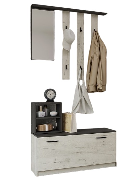 Nábytek je vyroben z LTD desek, které jsou nenáročné na údržbu. Barevné provedení: craft bílý, grafit.