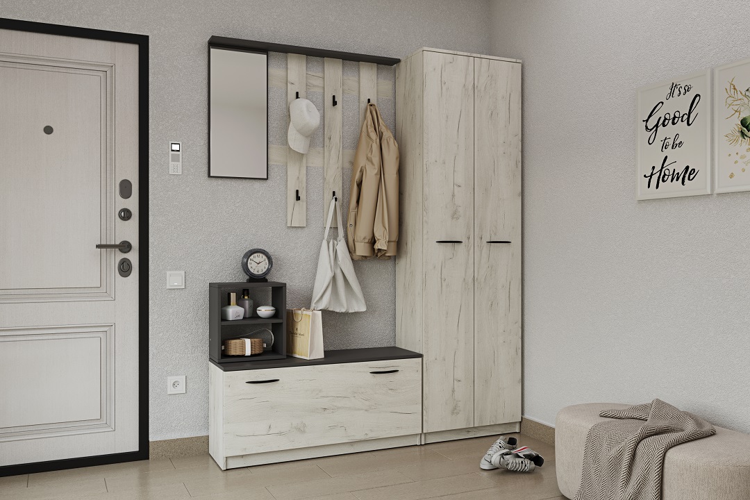 Nábytek je vyroben z LTD desek, které jsou nenáročné na údržbu. Barevné provedení: dub Craft bílý, grafit.