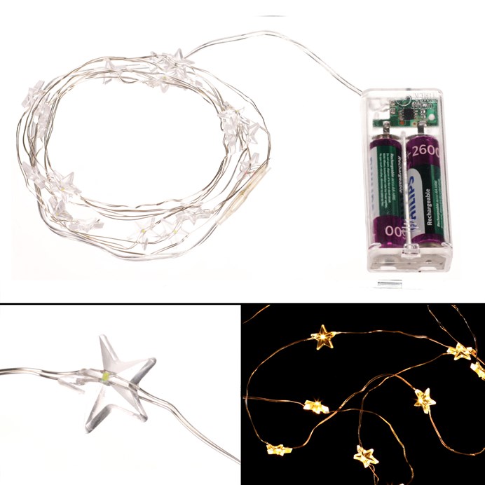 Dotaz na produkt Na splátky ještě dnesLED řetěz s hvězdičkami v teplé žluté barvě vytváří příjemnou atmosféru v interiéru i exteriéru. Délka 2 metry je osazena 20 LED diodami, které jsou umístěny v průhledných plastových hvězdičkách. Napájení zajišťuje bateriový box s časovačem, který umožňuje automatické zapínání a vypínání světel. Jemné a decentní osvětlení je vhodné pro dekoraci oken, polic nebo zahradních prostor. Díky lehkému a flexibilnímu provedení se řetěz snadno tvaruje a umisťuje podle potřeby.
