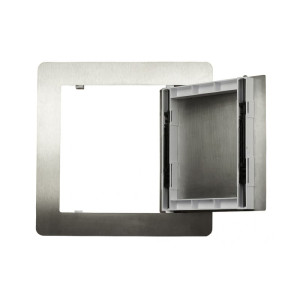 Instalace: Do rámečku profilu U s kotevními otvory natlačíme pojivo a následně zasadíme do připraveného otvoru. Dvířka se uzavírají lehkým zatlačením do rámečku, otevírají se pomocí běžné platební karty, kterou zasunem do drážky na čelní straně dvířek.