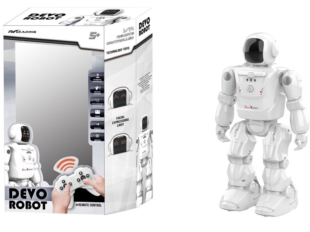 Robot MaDe na dálkové ovládání představuje perfektní úvod do světa interaktivních hraček. Díky jednoduchému ovládání a pohybům do všech směrů si s ním děti užijí hodiny zábavy. Robot je vyrobený z lehkého plastu, takže jej bez problémů unesou i menší děti. Moderní design osloví každého malého průzkumníka technologií. Skvělá volba pro narozeniny, svátky nebo jen tak pro radost!