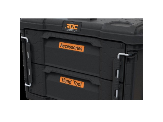 Box na nářadí ROC Pro Gear 2.0 XL se 2 šuplíky, nosnost šuplíků až 10 kg, celková kapacita 28 l, oranžové popisovací štítky na přední straně, vnitřní rozdělovací přepážky, bezpečnostní zarážky, modulární systém, odolné západky, ergonomické boční úchyty, možnost uzamčení visacím zámkem (není součástí balení), závěsný systém. Rozměry: 56,5 x 37,5 x 41,3 cm (š x h x v), objem 28 l, nosnost 20 kg.