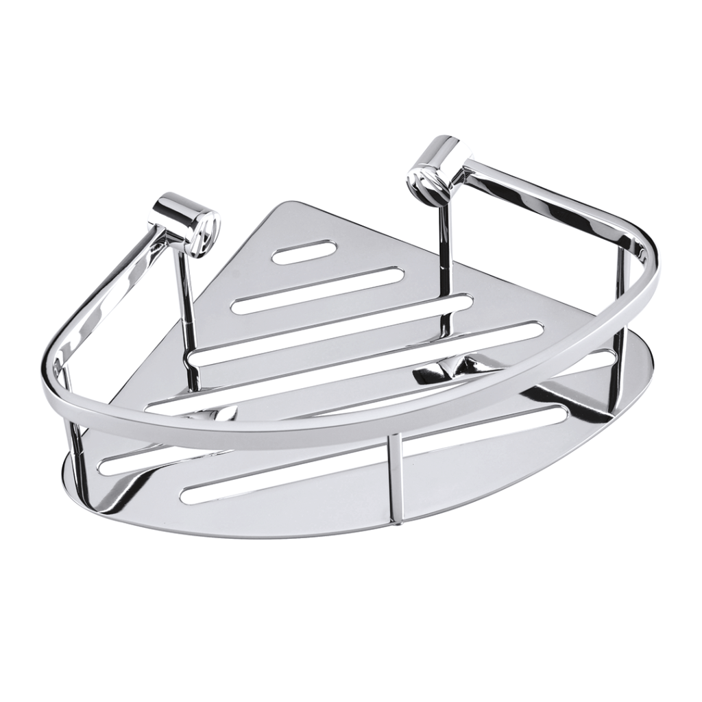 PARAMETRY:Balení: 1 ksHmotnost balení: 0,71  kgDruh výrobku: rohová polička Materiál: mosaz Barva popisná: chrom Barva základní: chrom Typ: nástěnné lesk/mat: lesk Šířka: 26  cmVýška: 8  cmHloubka:...