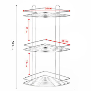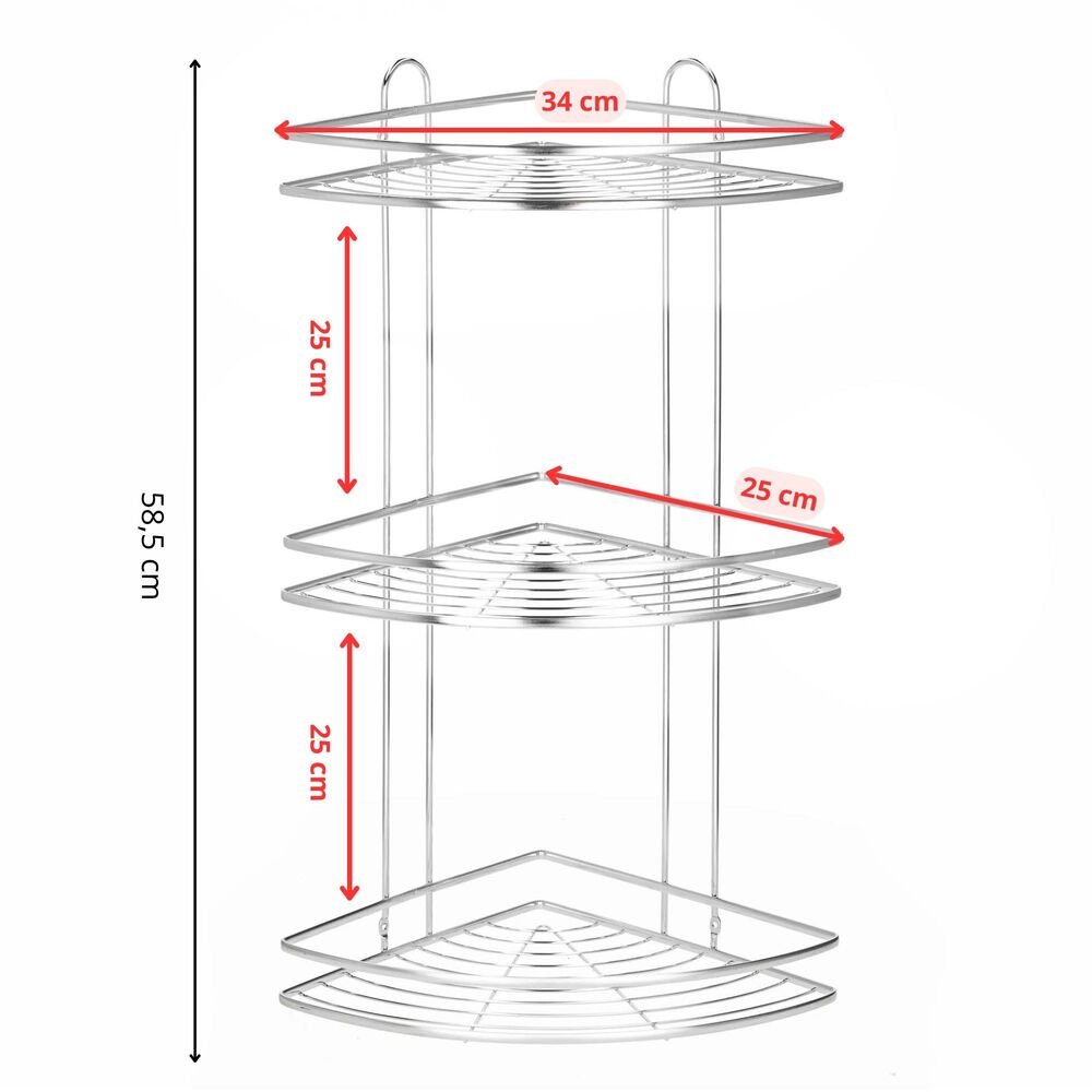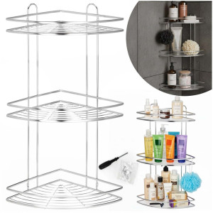 Polička do koupelny SPRINGOS HA7542 stříbrná je praktickým a elegantním řešením pro uspořádání kosmetiky i drobných doplňků. Díky trojúhelníkovému tvaru efektivně využívá roh koupelny, takže se skvěle hodí i do menších prostor. Třípatrové provedení poskytuje dostatek místa a umožňuje přehledné uložení všech potřeb. Kovová konstrukce v lesklém stříbrném provedení působí moderně a zároveň odolně. Velkou výhodou je snadná montáž, kterou usnadňuje přiložený šroubovák a montážní příslušenství. Otevřený design navíc zajišťuje rychlé vysychání a omezuje usazování vlhkosti.