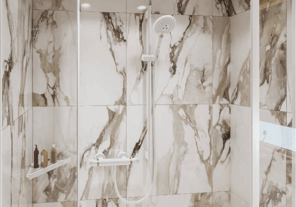 Polička do sprchy se bezpečně připevňuje ke stěně pomocí čtyř šroubů. Na obou stranách je vzdálenost mezi otvory 26 mm.