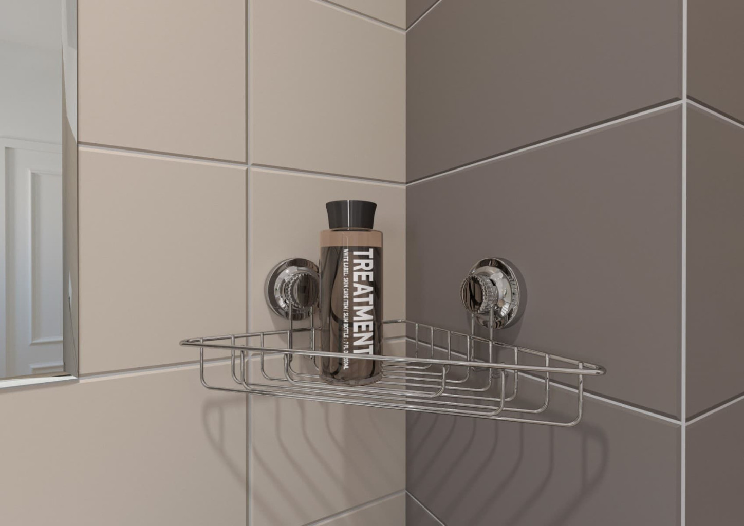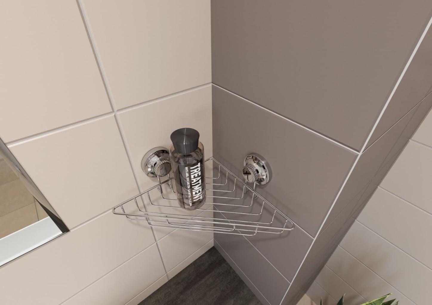 Nástěnná rohová polička Ecoloc nabízí snadnou a rychlou instalaci bez vrtání.