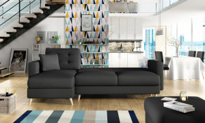 Rohová sedací souprava vyrobena z kvalitních materiálů poskytuje pohodlné posezení u televize a zároveň se díky zajímavému modernímu designu stane dominantou každého obývacího pokoje. Konstrukce soupravy je vyrobena z kombinace dřeva a dřevotřískové desky. Pohovku lze navíc rozložit a vytvořit tak spací plochu o rozměrech 210 x 120 cm vhodnou pro příležitostné přespání.