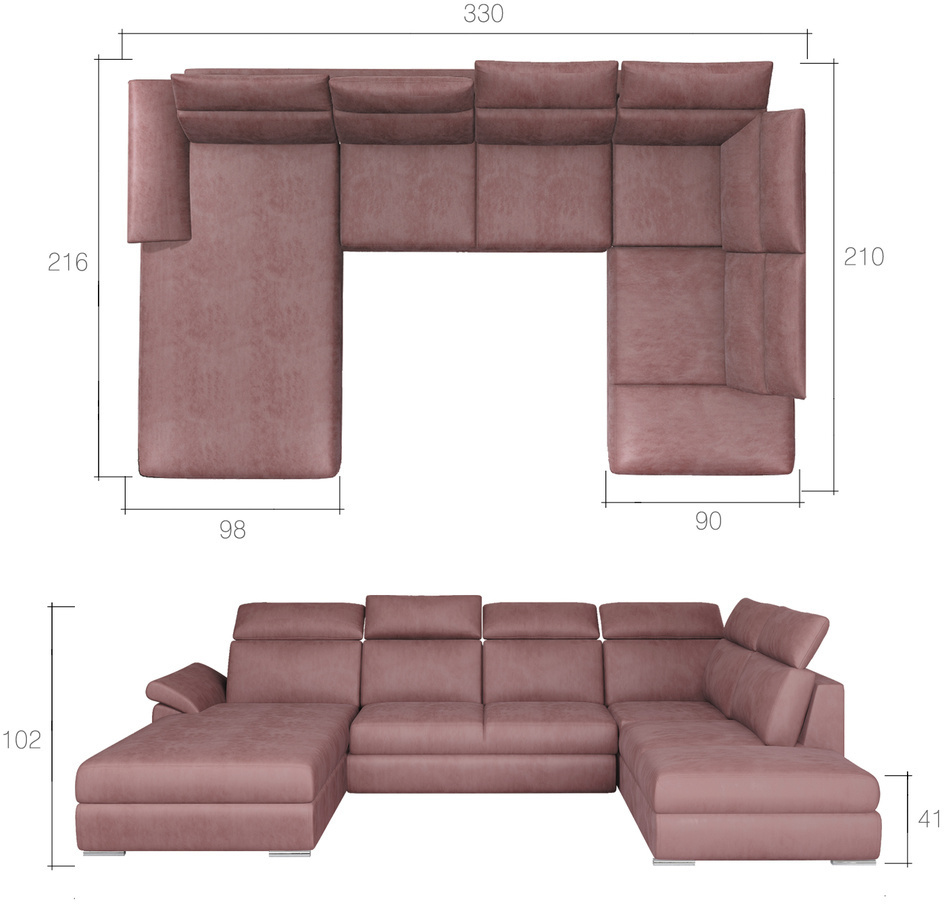 Rohová sedací souprava vyrobena z kvalitních materiálů poskytuje pohodlné posezení u televize a zároveň se díky zajímavému modernímu designu stane dominantou každého obývacího pokoje. Konstrukce soupravy je vyrobena z kombinace dřeva a dřevotřískové desky a výplň sedáků tvoří polyuretanová pěna s pružinami typu Wave. Pohovku lze navíc rozložit a vytvořit tak spací plochu o rozměrech 265 x 125 cm vhodnou pro příležitostné přespání.