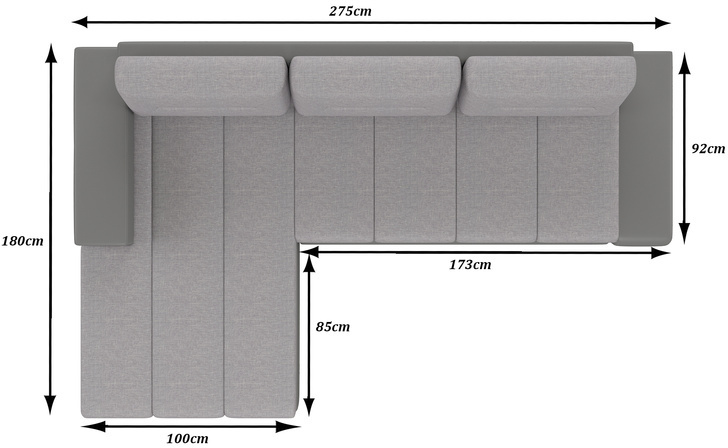 - výška s polštáři: 85 cm