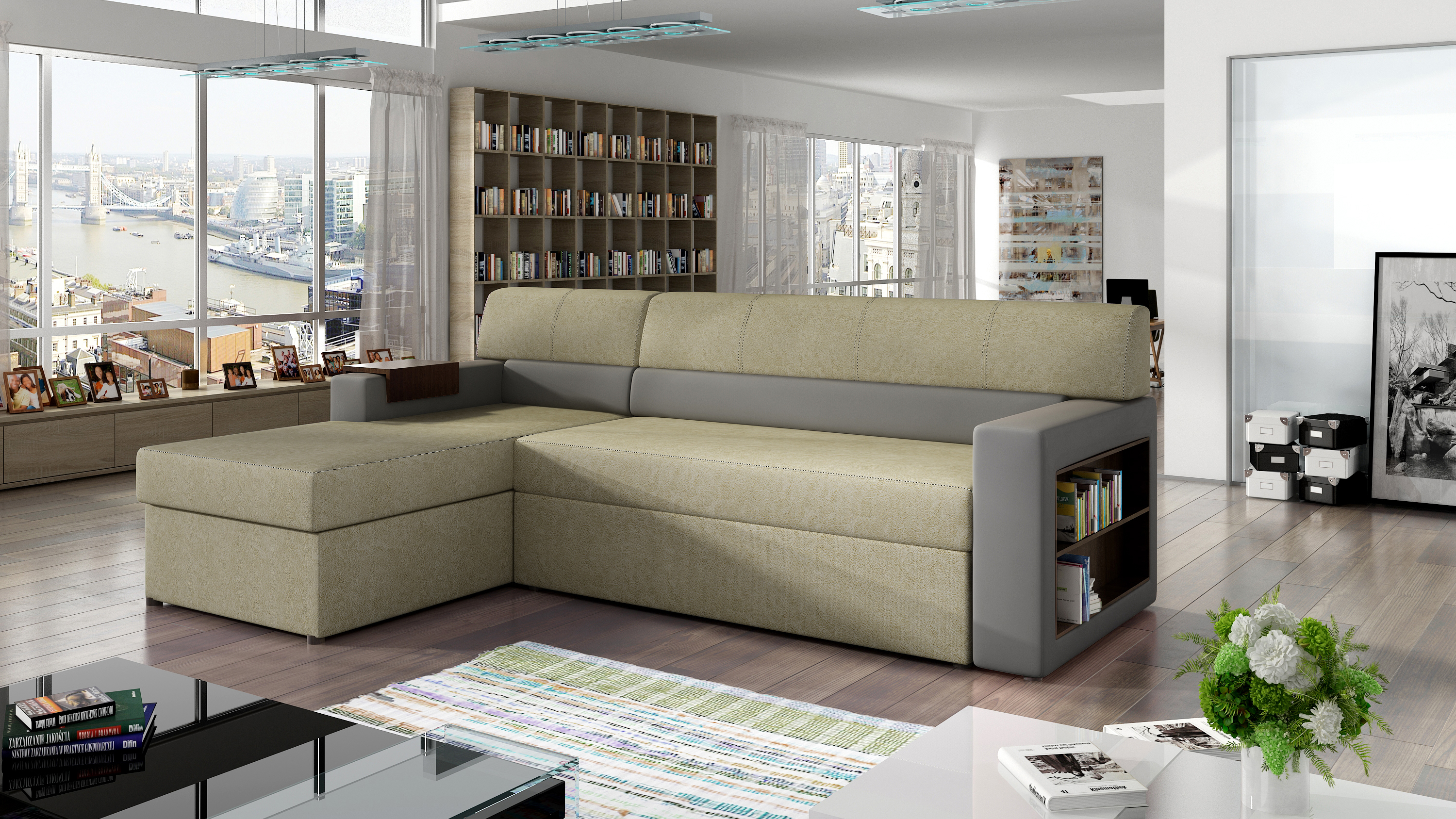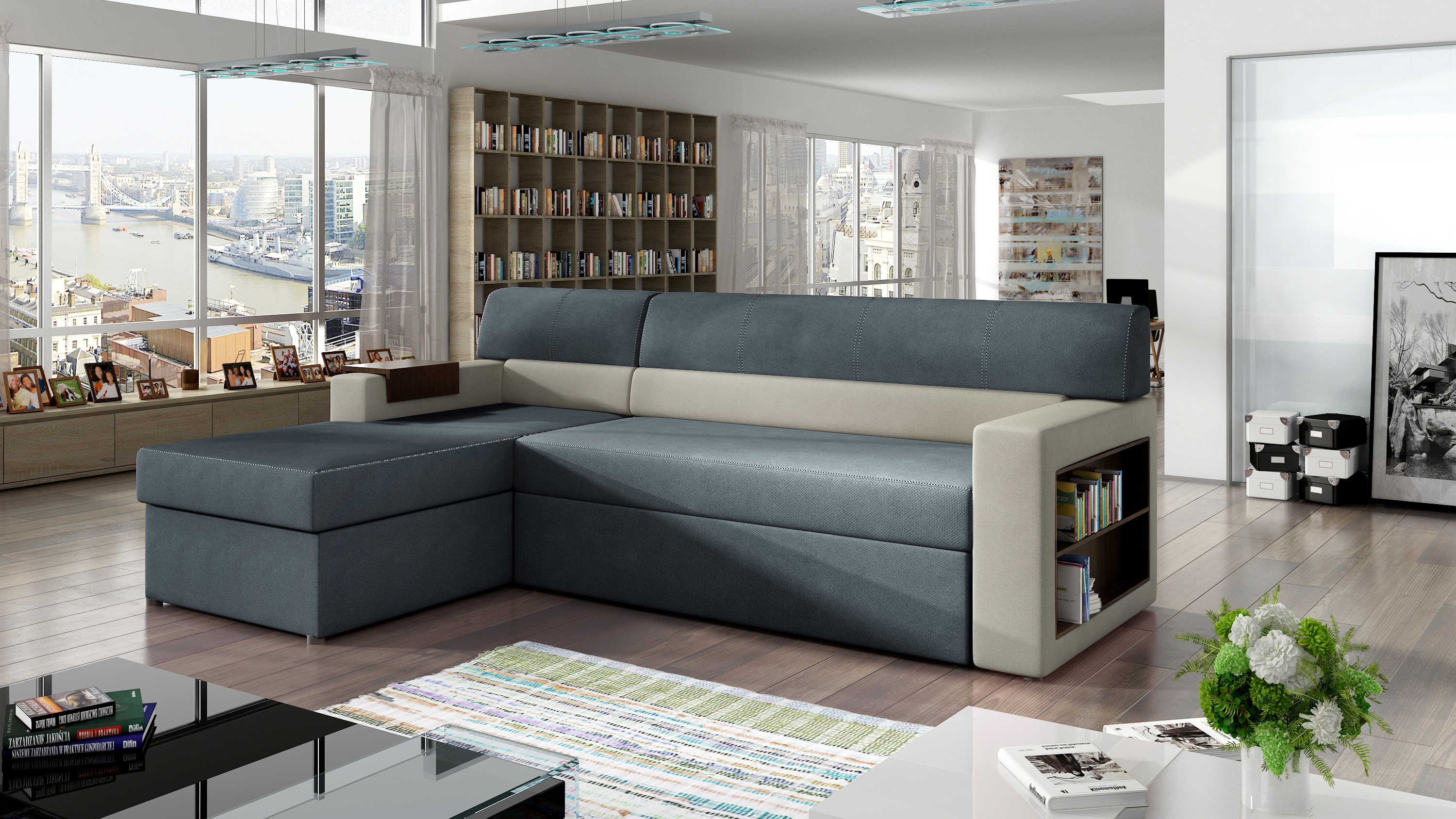 Rohová sedací souprava vyrobena z kvalitních materiálů poskytuje pohodlné posezení u televize a zároveň se díky zajímavému modernímu designu stane dominantou každého obývacího pokoje. Konstrukce soupravy je vyrobena z kombinace dřeva a dřevotřískové desky a výplň sedáků tvoří polyuretanová pěna s vlnitými pružinami. Pohovku lze navíc rozložit a vytvořit tak spací plochu o rozměrech 210x125cm vhodnou pro příležitostné přespání.