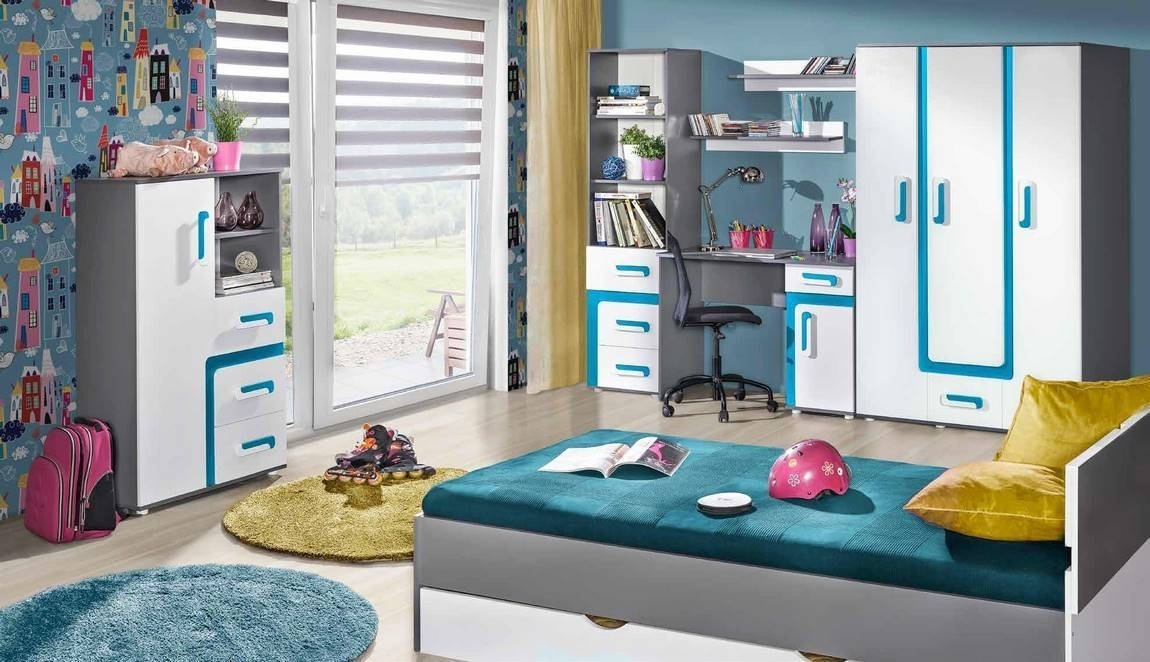 Šatní skříň rohová APETTITA ze sektorové řady, která se vyznačuje netradičním zpracováním barev a originalitou úchytů. Tento styl nábytku zaujme každou mladší generaci. Skříň je vyrobena z kvalitní LTD desky hraněné ABS lištou. Korpus je v barvě antracit, dveře jsou bílé matné, doplňková barva je tyrkys. Úchytky jsou v barevné kombinaci tyrkys/bílá. Uvnitř skříně je šatníková tyč a police, v dolní části je zásuvka. Sektorový nábytek APETTITA má široký výběr prvků, který Vám zaručí sestavit si dětský nebo studentský pokoj, ložnici či kancelář podle svých potřeb, přání a představ. Dodáváme v demontovaném stavu.