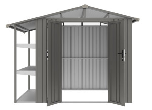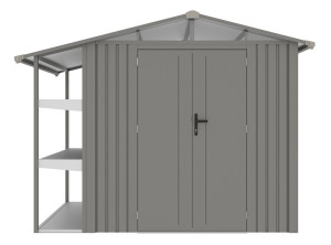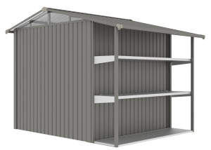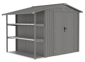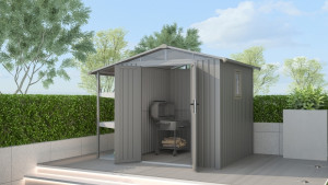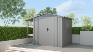 Dotaz na produkt Na splátky ještě dnesPlechový zahradní domek AMY X-B – prémiová kvalita a funkčnost. Zahradní domek AMY X-B je skvělou volbou pro každého, kdo hledá pevný a praktický úložný prostor na zahradě. Tento prémiový plechový domek se vyznačuje vysokou odolností a kvalitním provedením. Domek je vyroben z ocelových panelů o tloušťce 0,4 mm, které jsou žárově pozinkované pro maximální ochranu proti korozi. Ocelový rám s tloušťkou 0,5-1,2 mm zajišťuje stabilitu a dlouhou životnost. Součástí konstrukce jsou i 3 praktické venkovní regály, které nabízejí další úložný prostor. Systém na odvod dešťové vody umožňuje snadné odvádění přebytečné vody a popřípadě i zachytávání dešťové vody pro její další použití. Uvnitř najdete optimální podmínky díky polykarbonátovému oknu, které propouští dostatek světla a zajišťuje lepší ventilaci. Prostorné dvojité dveře s rozměry 106x178 cm jsou uzamykatelné, což zvyšuje bezpečnost a ochranu uložených věcí. S vysokými stěnami je domek navíc velmi pohodlný na používání, poskytuje více prostoru i pro vyšší uživatele. Vnitřní rozměry domku jsou 206x206 cm, což nabízí dostatek místa pro uskladnění zahradního nářadí, vybavení i sezónních potřeb. Díky velkým uzamykatelným dvojitým dveřím získáte snadný přístup do domku. Součástí levé části dveří jsou falcové, dveřní západky, díky nimž muže být tato část dveří pevně zavřená, ale zároveň ji lze otevřít v případě potřeby. Ve dveřích je zabudovaný zámek s klíčem pro bezpenčné uložení věcí. Součástí domku je i podlahový obvodový rám, samotná podlaha součástí domku není. HLAVNÍ VÝHODY: Pevné ocelové panely (0,4 mm) a rám (0,5-1,2 mm) z žárově pozinkované oceli Polykarbonátové okno pro lepší ventilaci a světlo Praktické venkovní regály pro další úložný prostor Uzamykatelné dvojité dveře (106x178 cm) Vysoké stěny pro pohodlné používání Systém odvodu dešťové vody ROZMĚRY DOMKU