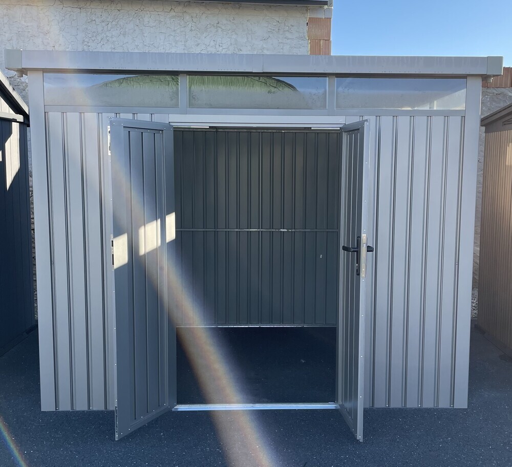 Dotaz na produkt Na splátky ještě dnesZahradní domek ANNA využijete pro uskladnění např. zahradního nářadí, jízdního kola, sekačky, příslušenství k bazénu, dřeva atd. Zahradní domek v moderním designu se hodí do každé zahrady. Domek má dvojité křídlové dveře, které lze uzamknout. Rozměr dveří: 108x180 cm. Vyroben z kvalitních ocelových plechů tloušťky 0,4 mm a kvalitního rámu zpozinkované oceli tloušťky 0,5-1,2 mm. Maximální zatížení střechy sněhem je 60 kg/m2. Součástí je jedno otevíratelné okno, kde si můžete určit, na které straně bude toto okno umístěné. Zároveň je konstrukce domku navržena tak, že pokud okno zcela otevřete, přichytí se otevřená část okna magnetem ke konstrukci domku. Nemusíte se tak obávat, že by při větru došlo k poškození či poškrábání kontrukce. Díky prosvětlené vrchní části panelů je v domku více světla. Systém rychlého odvodu deště Bez podlahy.