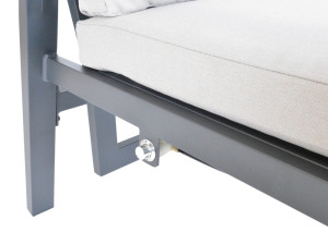 | Materiál: | hliníková konstrukce, teakové područky, 5 cm sedací poduška a 10 cm opěrková poduška z vodoodpudivé předené tkaniny (polyester 250 g), odolné UV záření |