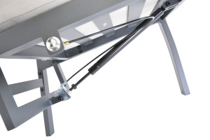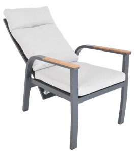 materiál: hliníková konstrukce, teakové područky a teaková deska stolu, 10 cm vysoké podušky (polyester)