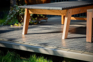 Dotaz na produktModulární plastové podlahové dlaždice lze využít jako náhradu za kamennou dlažbu. Dlaždice jsou určené jak pro vnitřní, tak i pro venkovní použití.Vhodné jsou nejen pro balkony, terasy, ale i pro sklepy a garáže. Sestavení podlahy z dlaždic je velmi snadné, není zapotřebí žádné nářadí, stačí pouze rovný podklad. Jsou mrazuvzdorné, takže mohou být používány venku i v zimě. Zároveň unesou opravdu velké zatížení, takže se nemusíte obávat prasknutí i při opravdu velkém zatížení například osobním autem. Dlaždice se propojují díky nástrčným spojům (click systém) a vytvářejí stabilní a jednotný povrch. Podlaha je velmi pevná a odolná UV záření. Vyrobena z recyklovaného materiálu. Díky modularitě je možné podlahu kdykoliv složit, takže ji můžete využít i jako dočasnou podlahovou krytinu. Balení se skládá z 11 ks podlahových dlaždic, které zakryjí 1 metr čtvereční.