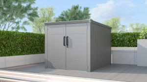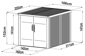 Dotaz na produkt Na splátky ještě dnesElegantní a praktická zahradní skříň určená k bezpečnému uskladnění až 4 jízdních kol. Skříň je vyrobena z vysoce kvalitních materiálů – žárově pozinkované ocelové panely o tloušťce 0,4 mm a robustní ocelový rám o síle 0,6-1,8 mm zajišťují dlouhou životnost a odolnost vůči povětrnostním vlivům. KLIČOVÉ VLASTNOSTI Vnitřní rozměry: 160 x 211 cm Nosnost střechy: až 120 kg/m² Dvojité dveře: s bezpečným kombinovaným zámkem pro snadný přístup a maximální bezpečnost. Systém odvodu dešťové vody: skříň je vybavena efektivním systémem rychlého odvodu deště, který chrání vaše kola před vlhkostí. Lišty na kola: součástí balení jsou 2 praktické lišty pro jednoduché ukládání a vyjímání kol, s možností dokoupení dalších lišt. Každá lišta se skládá ze 2 kolejnic a držáku. Do střešní konstrukce se instaluje hliníkový profil s držákem a spodní dráha je z 0,8 mm silného zinkového profilu. Skříň vyniká nejen svou funkčností, ale také elegantním designem, který se snadno začlení do každého exteriéru. Zajistěte si pohodlné a bezpečné ukládání kol s touto kvalitní zahradní úschovnou. ROZMĚRY SKŘÍNĚ