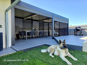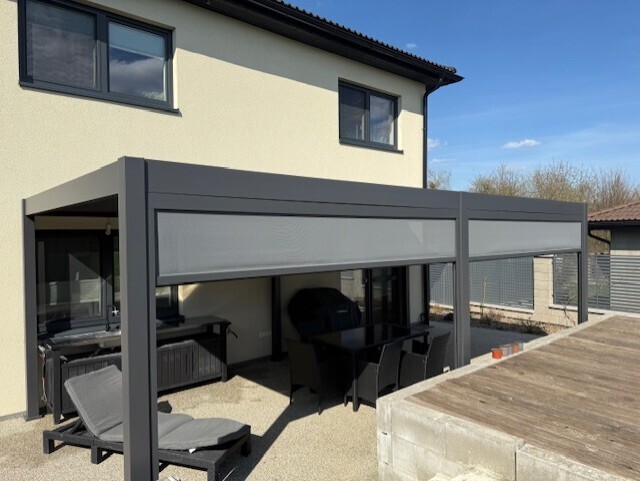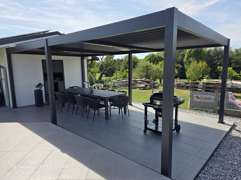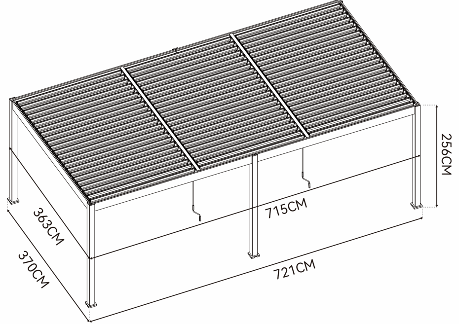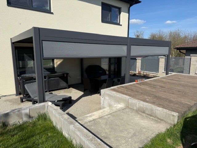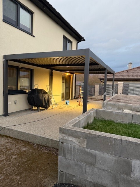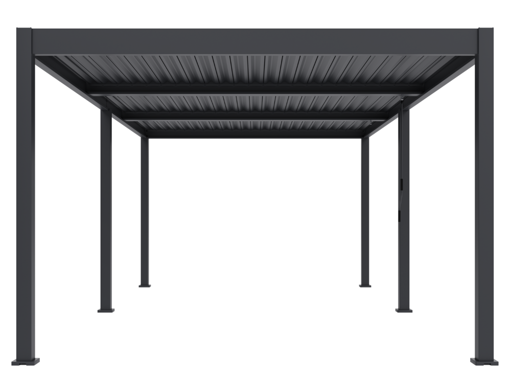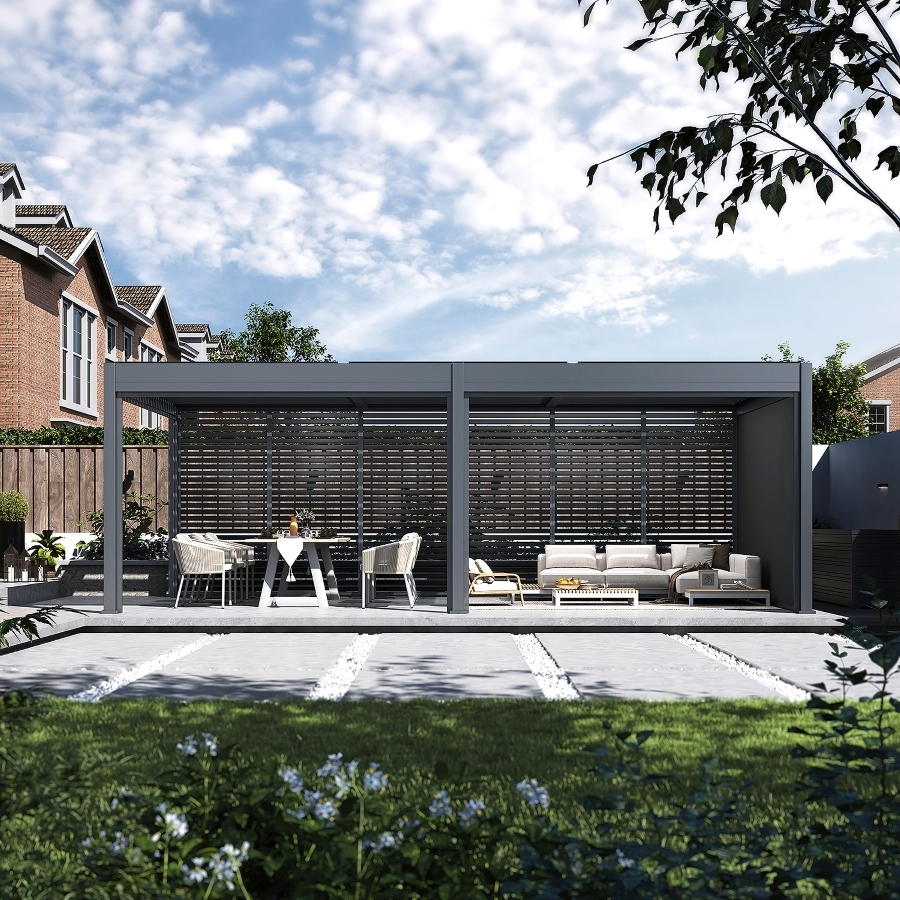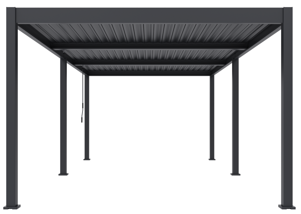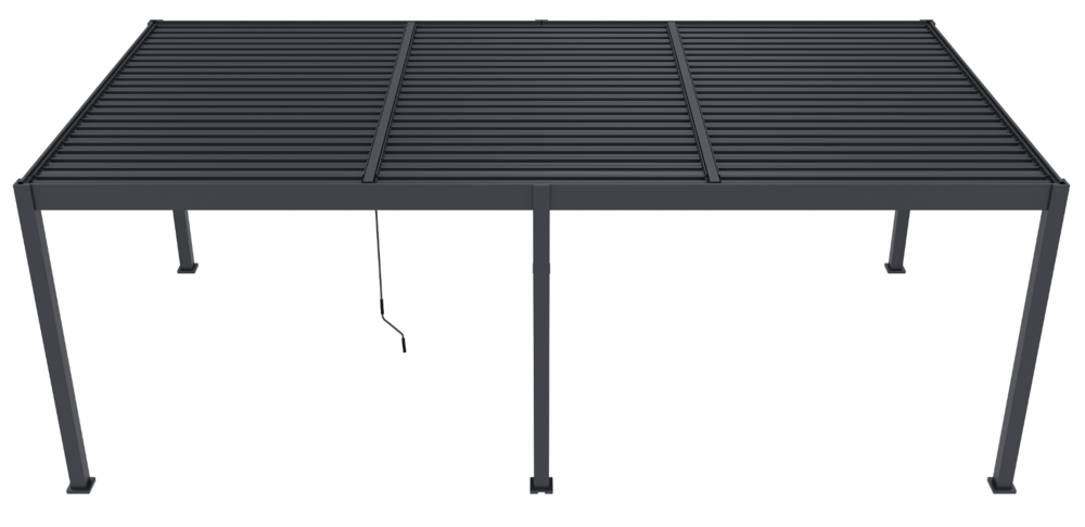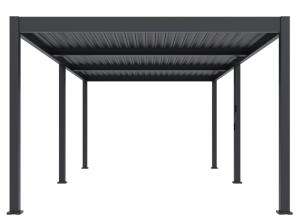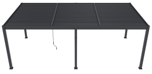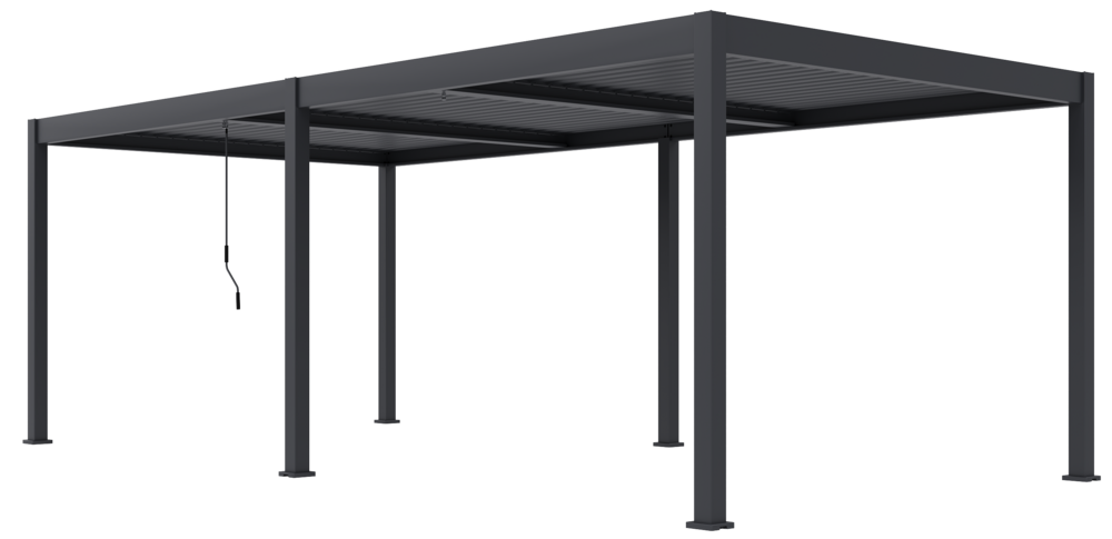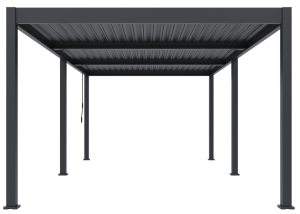 Dotaz na produkt Na splátky ještě dnesPrémiová zahradní hliníková volně stojící bioklimatická pergola o rozměrech 7,2x3,6 metry představuje ideální způsob zastřešení Vašeho venkovního posezení. Velmi pevná a stabilní konstrukce v antracitové barvě RAL 7016, v matné povrchové úpravě se hodí do každého prostoru, není zapotřebí vrtat do stěny. Pergola je vyrobena z vysoce kvalitního hliníku, který je ošetřen práškovou barvou, což zaručuje odolnost vůči povětrnostním vlivům. Lamely jsou rozděleny na 3 zóny a každou tuto část je možné ovládat zvlášť. 69 nastavitelných otočných lamel Vás ochrání nejen před sluncem, ale i před deštěm. Lamely lze otáčet od 0°, kdy docílíte úplně uzavřené střechy až do 135°, díky čemuž získáte skvělou mobilitu a možnost zastínit slunce z jakékoliv strany. Lamely lze ovládat jednoduše manuálně pomocí kličky. Ta je navržena tak, abyste lamely mohli snadno otočit do požadované polohy a aby při otáčení lamel nedocházelo k poškrábání konstrukce pergoly. Zároveň je klička na konstrukci umístěna tak, aby při doplnění pergoly o zástěny či panely nebránila ve snadné manipulaci s těmito doplňky. Kličku můžete jednoduše sundat. Ke svodu vody dochází unikátním drenážním systémem přímo uvnitř konstrukce. Lamely jsou schopné odvést opravdu velké množství vody až 17 l/m2 za hodinu.V zimních měsících je zapotřebí ponechat lamely ve svislé pozici. I přesto jsou lamely schopné unést 30-40 centimetrovou vrstvu sněhu, což představuje zátěž přibližně 50 kg/m2. Toto zatížení však nemůže být dlouhodobé. Kteroukoliv stranu pergoly lze doplnit o zástěnu. V nabídce máme různé rozměry zástěn s hliníkovou konstrukcí a výplní z textilenu, které poskytnou ochranu před větrem a zároveň vytvoří příjemný stín. Pergolu je také možné doplnit o stínicí panely s fixními či sklápěcími horizontálními lamelami pro dodatečné soukromí a zastínění. Díky skvělým vlastnostem, detailnímu zpracování a modernímu designu bioklimatické pergoly využijete venkovní posezení mnohem častěji. Robustní sloupek má rozměry 116x116 mm, při instalaci je zapotřebí počítat s patkou sloupku o rozměrech 160x160 mm. Patka je z 8 mm silné oceli a je navíc zakryta hliníkovým krytem (165x165 mm) s integrovaným drenážním systémem. Vyvýšený hliníkový profil s přidanou horní lištou ukrývá lamely tak, že z bočního pohledu nejsou viditelné a jsou v jedné linii s profilem. Mezi jednotlivými zónami s lamelami jsou pevné nosníky, do kterých se nemusíte bát instalovat například osvětlení. S bioklimatickou pergolou si můžete užívat maximum slunečních paprsků, zároveň se můžete proti těmto paprskům i chránit správným nastavením lamel. Pergola též umožňuje snadnou ventilaci prostoru a naopak dokonalý přístřešek v případě deště. HLAVNÍ VÝHODY 69 hliníkových lamel rozdělená střešní část na 3 zóny flexibilnější lamely s úhlem otočení od 0° do 135° vyvýšená horní lišta hliníkového profilu - lamely nejsou vidět ani při otáčení integrovaný drenážní systém celohliníková konstrukce - silné nosníky nejsou viditelné spojovací prvky, šrouby - hladká konstrukce ROZMĚRY PERGOLY