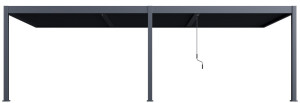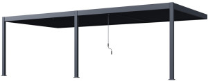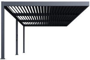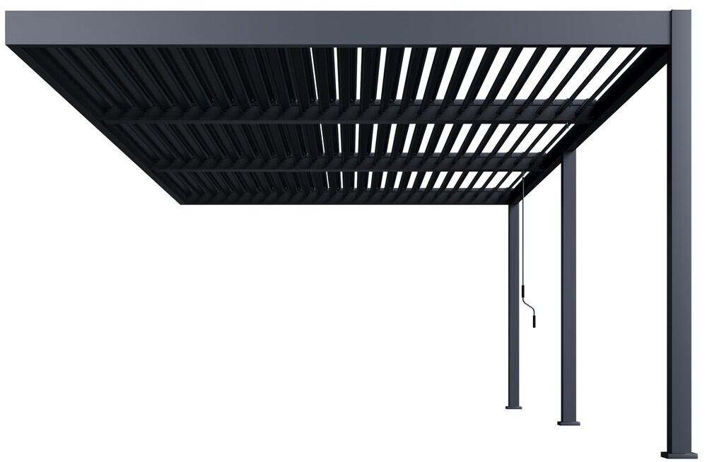 Dotaz na produkt Na splátky ještě dnesPrémiová zahradní hliníková bioklimatická pergola instalovaná do stěny, o rozměrech 8x4 metry představuje ideální způsob zastřešení Vašeho venkovního posezení. Velmi pevná a stabilní konstrukce v antracitové barvě RAL 7016, v matné povrchové úpravě se hodí do každého prostoru. Pergola je vyrobena z vysoce kvalitního hliníku, který je ošetřen práškovou barvou, což zaručuje odolnost vůči povětrnostním vlivům. Lamely jsou rozděleny na 3 zóny a každou tuto část je možné ovládat zvlášť. 75 nastavitelných otočných lamel Vás ochrání nejen před sluncem, ale i před deštěm. Lamely lze otáčet od 0°, kdy docílíte úplně uzavřené střechy až do 135°, díky čemuž získáte skvělou mobilitu a možnost zastínit slunce z jakékoliv strany. Lamely lze ovládat jednoduše manuálně pomocí kličky. Ta je navržena tak, abyste lamely mohli snadno otočit do požadované polohy a aby při otáčení lamel nedocházelo k poškrábání konstrukce pergoly. Zároveň je klička na konstrukci umístěna tak, aby při doplnění pergoly o zástěny či panely nebránila ve snadné manipulaci s těmito doplňky. Kličku můžete jednoduše sundat. Ke svodu vody dochází unikátním drenážním systémem přímo uvnitř konstrukce. Lamely jsou schopné odvést opravdu velké množství vody až 17 l/m2 za hodinu.V zimních měsících je zapotřebí ponechat lamely ve svislé pozici. I přesto jsou lamely schopné unést 30-40 centimetrovou vrstvu sněhu, což představuje zátěž přibližně 50 kg/m2. Toto zatížení však nemůže být dlouhodobé. Pergolu lze doplnit o přední zástěny. V nabídce máme čtyřmetrové zástěny s hliníkovou konstrukcí a výplní z textilenu, které poskytnou ochranu před větrem a zároveň vytvoří příjemný stín. Pergolu je také možné doplnit o stínicí panely s fixními či sklápěcími horizontálními lamelami nebo stínící stěnou vertikálně sklápěcí nebo posuvnou zástěnou pro dodatečné soukromí a zastínění. Díky skvělým vlastnostem, detailnímu zpracování a modernímu designu bioklimatické pergoly využijete venkovní posezení mnohem častěji. Robustní sloupek má rozměry 116x116 mm, při instalaci je zapotřebí počítat s patkou sloupku o rozměrech 160x160 mm. Patka je z 8 mm silné oceli a je navíc zakryta hliníkovým krytem (165x165 mm) s integrovaným drenážním systémem. Vyvýšený hliníkový profil s přidanou horní lištou ukrývá lamely tak, že z bočního pohledu nejsou viditelné a jsou v jedné linii s profilem. Součástí je pevný středový nosník, do kterého se nemusíte bát instalovat například osvětlení. S bioklimatickou pergolou si můžete užívat maximum slunečních paprsků, zároveň se můžete proti těmto paprskům i chránit správným nastavením lamel. Pergola též umožňuje snadnou ventilaci prostoru a naopak dokonalý přístřešek v případě deště. INSTALACE DO STĚNY Při instalaci částí, které se montují přímo do stěny, dejte prosím pozor na způsob použití šroubů s hmoždinkami, kdy obě části (jak hmoždinka, tak samotný šroub) procházejí skrz konstrukční díl. HLAVNÍ VÝHODY 75 hliníkových lamel rozdělená střešní část na 3 zón flexibilnější lamely s úhlem otočení od 0° do 135° vyvýšená horní lišta hliníkového profilu - lamely nejsou vidět ani při otáčení integrovaný drenážní systém celohliníková konstrukce - silný středový nosník nejsou viditelné spojovací prvky, šrouby - hladká konstrukce ROZMĚRY PERGOLY