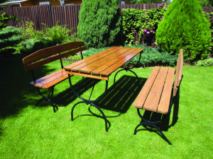 Zahradní dřevěná sestava, která zahrnuje 2 lavice + stůl. Set je vyrobený z borovicového dřeva s kovovou podnoží. Lakovaný povrch zaručuje ochranu a delší životnosti dřeva. Velkou výhodou tohoto setu je možnost složení podnože, díky tomu ho lze jednoduše uložit či převážet. Certifikát FSC zaručuje, že použité dřevo pochází ze šetrně obhospodařovaných lesů, ve kterých jsou dodržovány přísné ekologické asociální požadavky.