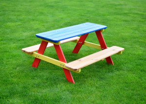Dětská dřevěná souprava PIKNIK k posezení či hře pro ty nejmenší. Veselé barevné provedení. Certifikát FSC zaručuje, že použité dřevo pochází ze šetrně obhospodařovaných lesů, ve kterých jsou dodržovány přísné ekologické asociální požadavky.