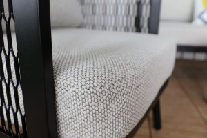 materiál: černá hliníková konstrukce, 12 cm vysoké podušky, z předené tkaniny (polyester 460 g/m2), vodu odpuzující tkanina