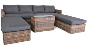 Luxusní sestava nábytku z umělého ratanu a hliníkové kostry. I když se umělý ratan podobá přírodnímu, je mnohem odolnější. Obecně lze říci, že je pružnější a je méně pravděpodobné, že se poničí.Umělý zahradní ratanový nábytek vyniká snadnou údržbou a velkou odolností vůči nepřízni počasí. Umělý ratanový nábytek se neloupe, nevznikají na něm nevzhledné praskliny, je stálobarevný po mnoho let. Jestliže nechcete mít obývací pokoj laděný ve stejném duchu jako ostatní, ratanový nábytek je možným řešením, jak se odlišit i v interiéru.Luxusní polyratanový nábytek má opravdu velmi široké využití. Je vhodný pro vnitřní i venkovní prostory, zahrady, terasy, zimní zahrady, balkony, kanceláře, jednací místnosti, recepce a další nebytové i bytové prostory. Nemusíte nic skládat ani montovat - nábytek je již připraven k okamžitému použití. Podušky jsou odnímatelné. Luxusní souprava z kvalitního umělého ratanu, který odolává UV zářenía teplotě od +50°C do -10°C.Kostra je hliníková + prášková barva.Ratan: 6,5mm půlkulatýDeska stolu: 5mm tvrzené skloPodušky:výplň-10 cm molitan, látka-230g/m2 polyester - všechny poduškyjsou vybaveny zipem, což umožňuje snadné praní povlaku