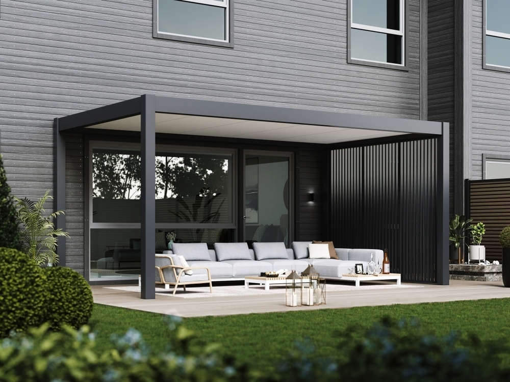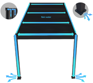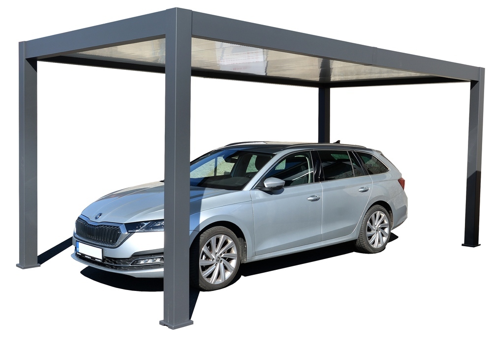 Dotaz na produkt Na splátky ještě dnesPrémiový hliníkový přístřešek na auto o rozměrech 5,3x3 metry představuje ideální způsob zastřešení parkovacího místa. Vzhledem k parametrům může stejně dobře sloužit jako pergola pro Vaše venkovní posezení. Velmi pevná a stabilní konstrukce v antracitové barvě RAL 7016, v matné povrchové úpravě se hodí do každého prostoru, není zapotřebí vrtat do stěny. Přístřešek je vyroben z vysoce kvalitního hliníku, který je ošetřen práškovou barvou, což zaručuje odolnost vůči povětrnostním vlivům. Každý sloupek má rozměry 15x15 cm a je tedy dostatečně pevný a odolný každému počasí. Střecha je z oceli a z pevných sendvičových panelů z PU pěny. Tyto 8 cm silné panely mají skvělé uživatelské vlastnosti. Díky nim má střecha nosnost až 100 kg/m2. Při velké vrstvě sněhu doporučujeme sníh ze střechy průběžně odstraňovat. Z vrchní strany jsou panely v antracitovém provedení, takže ladí se zbytkem konstrukce. Ze spodní částí je naopak bílá barva, aby pod samotným přístřešek bylo maximum světla. Ke svodu vody dochází unikátním drenážním systémem přímo uvnitř konstrukce. Odvodňovací systém pomáhá předcházet poškození laku Vašeho vozu a samozřejmě snižuje jeho znečištění. Díky tomu Vám přístřešek zároveň ušetří čas, který byste navíc strávili mytím auta. Kteroukoliv stranu pergoly lze doplnit o stěnu z WPC panelů. Tyto pevné panely poskytnou dodatečné uzavření přístřešku a vylepší tak ještě vlastnosti samotného přístřešku či pergoly. Třímetrové strany je možné doplnit o příslušenství v podobě zástěny či panelů. Třemi metrovými panely zcela zastíníte tyto strany. U delší strany přístřešku je také možné využít panely, pro dodatečné zastínění nebo jako designový prvek, jen prosím počítejte s tím, že ji zcela nevyplníte. Robustní sloupek má rozměry 150x150 mm, při instalaci je zapotřebí počítat s patkou sloupku o rozměrech 194x194 mm. Patka je z 8 mm silné oceli a je navíc zakryta hliníkovým krytem s integrovaným drenážním systémem. Hliníkový přístřešek PRESTIGE ochraní Vaše auto či venkovní posezení před deštěm, sněhem, ale i před slunečními paprsky. V létě zamezíte zbytečnému přehřívání vozu a v zimě díky němu nebudete muset škrábat zamrzlé auto. Díky skvělým vlastnostem, detailnímu zpracování a modernímu designu se přístřešek na auto PRESTIGE hodí k moderním stavbám s čistými liniemi. Jeho design je navíc velmi podobný bioklimatickým pergolám, takže můžete sladit vzhled venkovních staveb na Vašem pozemku. HLAVNÍ VÝHODY pevná hliníková konstrukce silná strešní konstrukce - sendvičové panely z PU pěny s nosností 100 kg/m2 moderní design využití - přistřešek na auto, pergola pro venkovní posezení integrovaný drenážní systém nejsou viditelné spojovací prvky, šrouby - hladká konstrukce bez nutnosti odborné montáže ROZMĚRY PŘÍSTŘEŠKU ROZMĚRY PATKY