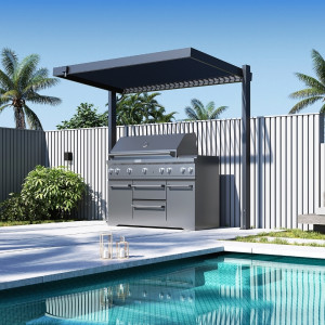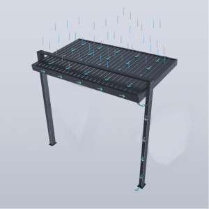 Dotaz na produkt Na splátky ještě dnesPrémiový hliníkový přístřešek na zahradní gril, který přináší dokonalou kombinaci stylu a funkčnosti pro Vaše venkovní posezení. Tento inovativní přístřešek, navržený s důrazem na dlouhou životnost a maximální pohodlí, je ideální volbou pro ochranu Vašeho grilu. Velmi pevná a stabilní konstrukce v antracitové barvě RAL 7016, v matné povrchové úpravě se hodí do každého prostoru, není zapotřebí vrtat do stěny. Přístřešek je vyroben z vysoce kvalitního hliníku, který je ošetřen práškovou barvou, což zaručuje odolnost vůči povětrnostním vlivům a dlouhotrvající pevnost. Zároveň je pevně ukotven do země a zajišťuje tak stabilitu a bezpečnost i při silnějším větru. Střecha je tvořena lamelami.Jedná se o jednovrstvé hliníkové lamely. Díky tomu je zajištěno optimální proudění vzduchu a odvětrávání v případě potřeby. Zároveň Vás lamely ve vodorovné pozici ochrání před deštěm, aby Vaše grilování probíhalo vždy v suchu. Lamely lze ovládat jednoduše manuálně pomocí kličky. Ta je navržena tak, abyste lamely mohli snadno otočit do požadované polohy (možnost otáčení od 0° do 135°) a aby při otáčení lamel nedocházelo k poškrábání konstrukce pergoly. Ke svodu vody dochází unikátním integrovaným drenážním systémem přímo uvnitř konstrukce. Lamely jsou schopné odvést opravdu velké množství vody. V zimních měsících je zapotřebí ponechat lamely ve svislé pozici. I přesto mají lamely nosnost 10 kg/m2. Ilustrační foto - vrchní nosník není součástí přístřešku. Elegantní design se dvěma nohami představuje minimalistický, ale zároveň moderní vzhled, který skvěle zapadne do jakéhokoli venkovního prostoru. Přístřešek na gril je vyroben ve stejném designu jako bioklimatické pergoly a přístřešky na auto. Můžete tak sladit vzhled venkovních staveb na Vašem pozemku. Správným nastavením lamel ochrání přístřešek proti slunečním paprskům, zároveň umožňuje snadnou ventilaci prostoru a naopak dokonalý přístřešek v případě deště. HLAVNÍ VÝHODY hliníkové lamely flexibilnější lamely s úhlem otočení od 0° do 135° integrovaný drenážní systém celohliníková konstrukce nejsou viditelné spojovací prvky, šrouby - hladká konstrukce ROZMĚRY PŘÍSTŘEŠKU NA GRIL PŮDORYS PŘÍSTŘEŠKU NA GRIL SLOUPEK A LAMELA PŘÍSTŘEŠKU NA GRIL NOSNÍKY PŘÍSTŘEŠKU NA GRIL