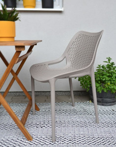 Dotaz na produkt Na splátky ještě dnesJednoduché, elegantní a zároveň praktické křeslo, které disponuje pevnou konstrukcí, která je vyrobena ze 100% recyklovaného materiálu. Tento materiál je odolný vůči UV záření. Křeslo lze využít jak v interiéru, tak i v exteriéru. Konstrukce křesla je nejen lehká, ale zároveň i velmi pevná díky použití kompozitního materiálu vyztuženého skelnými vlákny. Křeslo má nosnost až 150 kg a je tedy vhodné jak pro domácnosti, tak i pro komerční účely např. do restaurací či konferenčních sálů. Křeslo umožňuje také stohování, díky čemuž jich můžete uskladnit mnoho na malém prostoru.