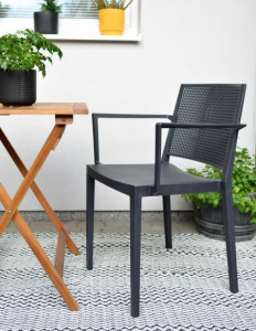 Dotaz na produkt Na splátky ještě dnesJednoduché, elegantní a zároveň praktické křeslo, které disponuje pevnou konstrukcí, která je vyrobena ze 100% recyklovaného materiálu. Tento materiál je odolný vůči UV záření. Křeslo lze využít jak v interiéru, tak i v exteriéru. Konstrukce křesla je nejen lehká, ale zároveň i velmi pevná díky použití kompozitního materiálu vyztuženého skelnými vlákny. Součástí křesla jsou i pohodlné područky. S nosností až 150 kg je vhodné jak pro domácnosti, tak i pro komerční účely např. do restaurací či konferenčních sálů. Křeslo umožňuje také stohování, díky čemuž jich můžete uskladnit mnoho na malém prostoru.