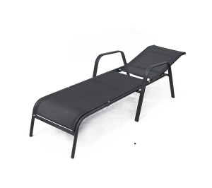 Dotaz na produkt Na splátky ještě dnesPolohovací lehátko se stabilní kovovou kostrou. Sedák a opěrná plocha je z textilie. Je vhodné na zahrady i terasy. Černá barva textilie - lze si vybrat z více barevných kombinací.