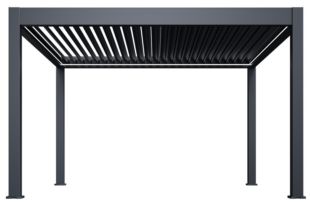 Dotaz na produkt Na splátky ještě dnesLuxusní zahradní hliníková volně stojící bioklimatická pergola o rozměrech 4x4 metry s ELEKTRICKÝM POHONEM pro otáčení lamel a LED OSVĚTLENÍM představuje ideální způsob zastřešení Vašeho venkovního posezení. Velmi pevná a stabilní konstrukce v antracitové barvě RAL 7016, v matné povrchové úpravě se hodí do každého prostoru, není zapotřebí vrtat do stěny. Pergola je vyrobena z vysoce kvalitního hliníku, který je ošetřen práškovou barvou, což zaručuje odolnost vůči povětrnostním vlivům. 25 nastavitelných otočných dvojitých lamel (dvě vrstvy s dutým vnitřkem) Vás ochrání nejen před sluncem, ale i před deštěm. Lamely lze otáčet od 0°, kdy docílíte úplně uzavřené střechy až do 135°, díky čemuž získáte skvělou mobilitu a možnost zastínit slunce z jakékoliv strany. Ke svodu vody dochází unikátním drenážním systémem přímo uvnitř konstrukce. Lamely jsou schopné odvést opravdu velké množství vody až 17 l/m2 za hodinu.V zimních měsících je zapotřebí ponechat lamely ve svislé pozici. I přesto jsou lamely schopné unést 30-40 centimetrovou vrstvu sněhu, což představuje zátěž přibližně 50 kg/m2. Toto zatížení však nemůže být dlouhodobé. Kteroukoliv stranu pergoly lze doplnit např. o zástěnu. V nabídce máme čtyřmetrové zástěny s hliníkovou konstrukcí a výplní z textilenu, které poskytnou ochranu před větrem. Pergolu je také možné doplnit o stínicí panely s fixními či sklápěcími horizontálními lamelami pro dodatečné soukromí a zastínění. Dále máme v nabídce stínicí stěnu nebo posuvnou zástěnu. Součástí pergoly je LED OSVĚTLENÍ. JEDEN MOTOR pro osvětlení i pro ovládání lamel Bezdrátové ovládání lamel a LED osvětlení jedním ovladačem. Díky skvělým vlastnostem, detailnímu zpracování a modernímu designu bioklimatické pergoly využijete venkovní posezení mnohem častěji. Robustní sloupek má rozměry 150x150 mm, při instalaci je zapotřebí počítat s patkou sloupku o rozměrech 160x160 mm. Patka je z 8 mm silné oceli a je navíc zakryta hliníkovým krytem ( mm) s integrovaným drenážním systémem. Vyvýšený hliníkový profil s přidanou horní lištou ukrývá lamely tak, že z bočního pohledu nejsou viditelné a jsou v jedné linii s profilem. S bioklimatickou pergolou si můžete užívat maximum slunečních paprsků, zároveň se můžete proti těmto paprskům i chránit správným nastavením lamel. Pergola též umožňuje snadnou ventilaci prostoru a naopak dokonalý přístřešek v případě deště. TÜV CERTIFIKACE - Pergola byla testována a byla jí udělena certifikace TÜV, která je známkou kvality, bezpečnosti a spolehlivosti. Bezpečnost – TÜV se zaměřuje na testování výrobků s ohledem na jejich bezpečnost pro uživatele. Kvalita – Produkty a výrobní procesy musí splňovat specifické normy kvality, což zaručuje jejich vysokou úroveň. Ochrana životního prostředí – TÜV certifikace zahrnuje také kontrolu vlivu na životní prostředí včetně ekologické udržitelnosti výrobků. Shoda s normami – Produkt musí splňovat specifické národní i mezinárodní standardy a legislativu. Spolehlivost – Certifikace je známkou toho, že produkt nebo služba je spolehlivá a bezpečná pro dlouhodobé užívání. HLAVNÍ VÝHODY 25 dvojitých hliníkových lamel flexibilnější lamely s úhlem otočení od 0° do 135° vyvýšená horní lišta hliníkového profilu - lamely nejsou vidět ani při otáčení integrovaný drenážní systém celohliníková konstrukce nejsou viditelné spojovací prvky, šrouby - hladká konstrukce TÜV certifikace