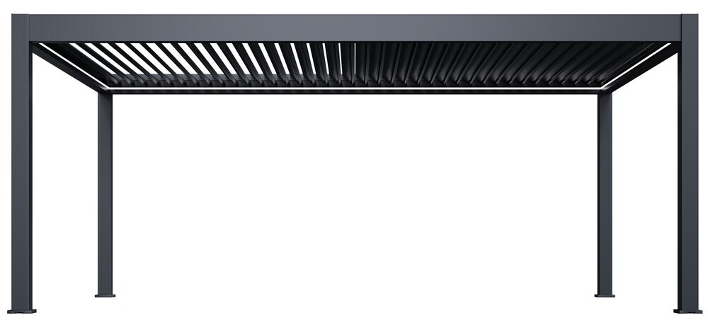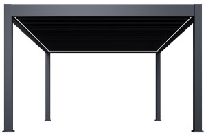 Dotaz na produkt Na splátky ještě dnesLuxusní zahradní hliníková volně stojící bioklimatická pergola o rozměrech 6x4 metry s ELEKTRICKÝM POHONEM pro otáčení lamel a LED OSVĚTLENÍM představuje ideální způsob zastřešení Vašeho venkovního posezení. Velmi pevná a stabilní konstrukce v antracitové barvě RAL 7016, v matné povrchové úpravě se hodí do každého prostoru, není zapotřebí vrtat do stěny. Pergola je vyrobena z vysoce kvalitního hliníku, který je ošetřen práškovou barvou, což zaručuje odolnost vůči povětrnostním vlivům. 42 nastavitelných otočných dvojitých lamel (dvě vrstvy s dutým vnitřkem) Vás ochrání nejen před sluncem, ale i před deštěm. Lamely lze otáčet od 0°, kdy docílíte úplně uzavřené střechy až do 135°, díky čemuž získáte skvělou mobilitu a možnost zastínit slunce z jakékoliv strany. Ke svodu vody dochází unikátním drenážním systémem přímo uvnitř konstrukce. Lamely jsou schopné odvést opravdu velké množství vody až 17 l/m2 za hodinu.V zimních měsících je zapotřebí ponechat lamely ve svislé pozici. I přesto jsou lamely schopné unést 30-40 centimetrovou vrstvu sněhu, což představuje zátěž přibližně 50 kg/m2. Toto zatížení však nemůže být dlouhodobé. Kteroukoliv stranu pergoly lze doplnit např. o zástěnu. V nabídce máme čtyřmetrové zástěny s hliníkovou konstrukcí a výplní z textilenu, které poskytnou ochranu před větrem. Pergolu je také možné doplnit o stínicí panely s fixními či sklápěcími horizontálními lamelami pro dodatečné soukromí a zastínění. Dále máme v nabídce stínicí stěnu nebo posuvnou zástěnu. Součástí pergoly je LED OSVĚTLENÍ. JEDEN MOTOR pro osvětlení i pro ovládání lamel Bezdrátové ovládání lamel a LED osvětlení jedním ovladačem. Díky skvělým vlastnostem, detailnímu zpracování a modernímu designu bioklimatické pergoly využijete venkovní posezení mnohem častěji. Robustní sloupek má rozměry 150x150 mm, při instalaci je zapotřebí počítat s patkou sloupku o rozměrech 160x160 mm. Patka je z 8 mm silné oceli a je navíc zakryta hliníkovým krytem ( mm) s integrovaným drenážním systémem. Vyvýšený hliníkový profil s přidanou horní lištou ukrývá lamely tak, že z bočního pohledu nejsou viditelné a jsou v jedné linii s profilem. S bioklimatickou pergolou si můžete užívat maximum slunečních paprsků, zároveň se můžete proti těmto paprskům i chránit správným nastavením lamel. Pergola též umožňuje snadnou ventilaci prostoru a naopak dokonalý přístřešek v případě deště. TÜV CERTIFIKACE - Pergola byla testována a byla jí udělena certifikace TÜV, která je známkou kvality, bezpečnosti a spolehlivosti. Bezpečnost – TÜV se zaměřuje na testování výrobků s ohledem na jejich bezpečnost pro uživatele. Kvalita – Produkty a výrobní procesy musí splňovat specifické normy kvality, což zaručuje jejich vysokou úroveň. Ochrana životního prostředí – TÜV certifikace zahrnuje také kontrolu vlivu na životní prostředí včetně ekologické udržitelnosti výrobků. Shoda s normami – Produkt musí splňovat specifické národní i mezinárodní standardy a legislativu. Spolehlivost – Certifikace je známkou toho, že produkt nebo služba je spolehlivá a bezpečná pro dlouhodobé užívání. HLAVNÍ VÝHODY 25 dvojitých hliníkových lamel flexibilnější lamely s úhlem otočení od 0° do 135° vyvýšená horní lišta hliníkového profilu - lamely nejsou vidět ani při otáčení integrovaný drenážní systém celohliníková konstrukce nejsou viditelné spojovací prvky, šrouby - hladká konstrukce TÜV certifikace