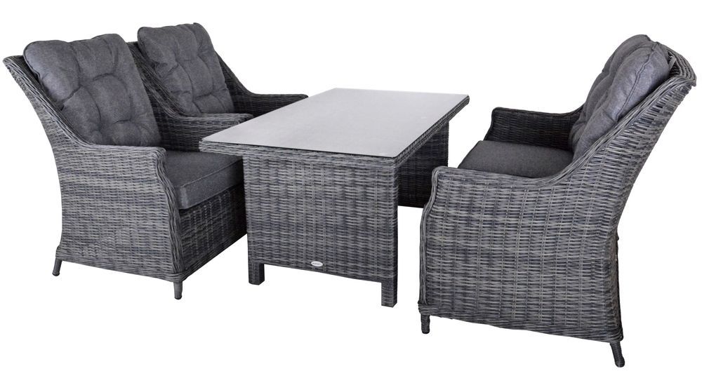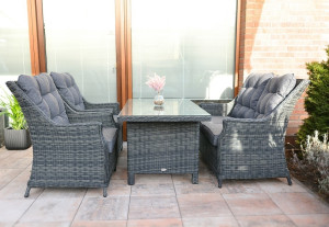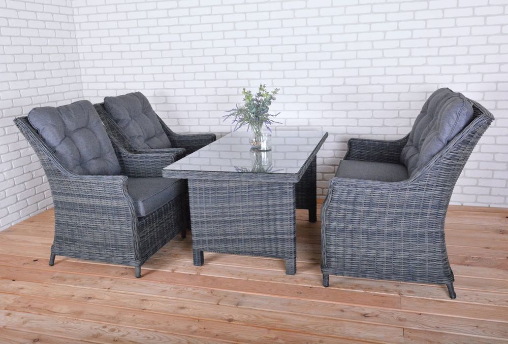 Luxusní sestava nábytku z umělého ratanu a hliníkové kostry. Součástí sestavy je jídelní stůl, pohodlné dvojsofa s vysokou zádovou opěrkou a dvě široká, pohodlná křesla. I když se umělý ratan podobá přírodnímu, je mnohem odolnější. Obecně lze říci, že je pružnější a je méně pravděpodobné, že se poničí.Umělý zahradní ratanový nábytek vyniká snadnou údržbou a velkou odolností vůči nepřízni počasí. Umělý ratanový nábytek se neloupe, nevznikají na něm nevzhledné praskliny, je stálobarevný po mnoho let. Jestliže nechcete mít obývací pokoj laděný ve stejném duchu jako ostatní, ratanový nábytek je možným řešením, jak se odlišit i v interiéru.Luxusní polyratanový nábytek má opravdu velmi široké využití. Je vhodný pro vnitřní i venkovní prostory, zahrady, terasy, zimní zahrady, balkony, kanceláře, jednací místnosti, recepce a další nebytové i bytové prostory. Nemusíte nic skládat ani montovat - nábytek je již připraven k okamžitému použití. Podušky jsou odnímatelné. Luxusní souprava z kvalitního umělého ratanu, který odolává UV zářenía teplotě od +50°C do -10°C.Kostra je hliníková + prášková barva. Ratan: 6,5mm půlkulatýDeska stolu: 5mm tvrzené skloPodušky: výplň-10 cm molitan, látka-230g/m2 polyester - spodní podsedáky jsou vybaveny zipem, což umožňuje snadné praní povlaku