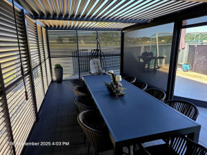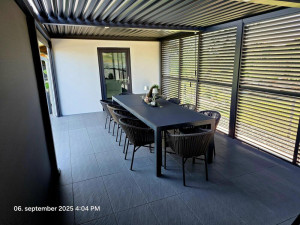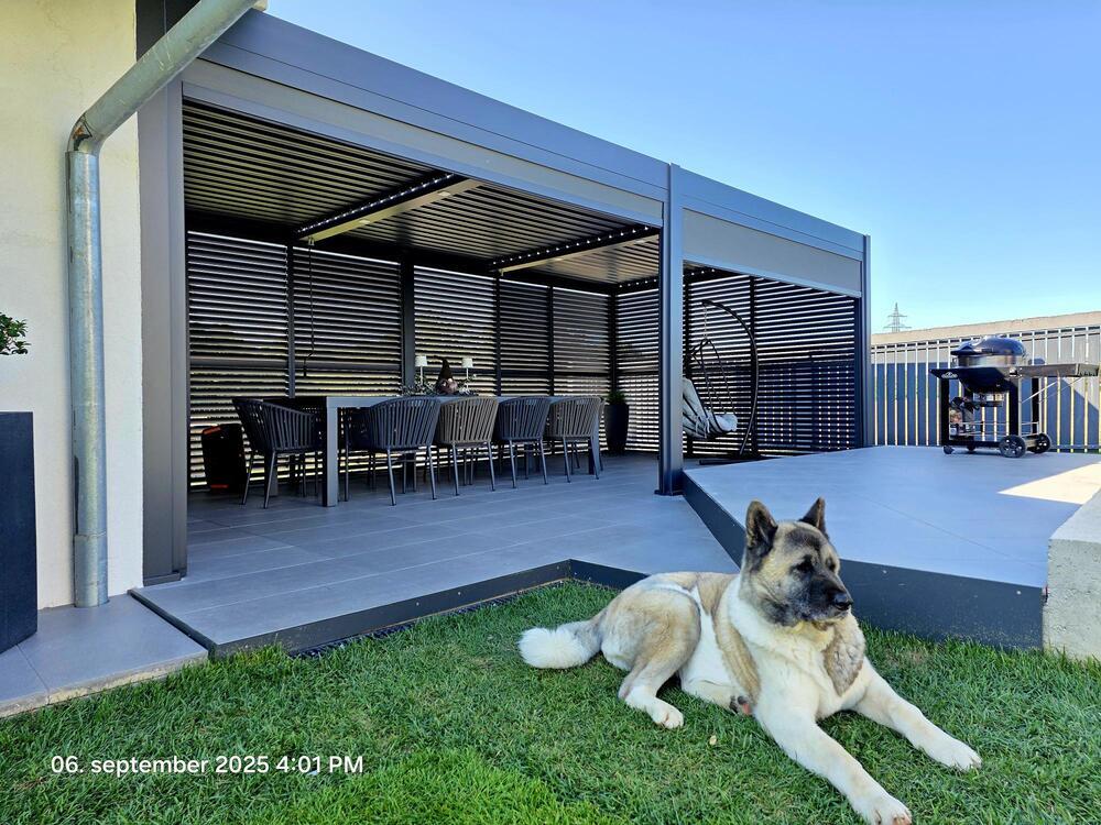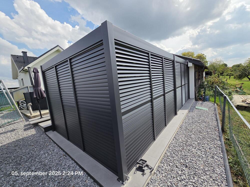 Dotaz na produkt Na splátky ještě dnesPro maximální využití bioklimatických pergol nabízíme také příslušenství v podobě panelu s horizontálními sklápěcími lamelami pro zastínění bioklimatické pergoly a získání většího soukromí. Velmi pevná a stabilní konstrukce a lamely v antracitové barvě RAL 7016. Panel a lamely jsou vyrobeny z vysoce kvalitního hliníku, který je ošetřen práškovou barvou, což zaručuje odolnost vůči povětrnostním vlivům. Panel lamel je rozdělen na dvě části, můžete tak sklápět zvlášť horní a spodní část lamel. Lamely je možné mít ve svislé pozici, nebo je natočit maximálně o 120°. Panely je možné na sebe napojovat a vytvořit tak například jednu stranu plně zastíněnou horizontálními lamelami pro dodatečné soukromí. Při použití 3 panelů plně zastíníte stranu o rozměru 4 m. Panely lze samozřejmě použít na částečné zastínění nebo jako designový prvek. Panely jsou kompatibilní se všemi typy našich bioklimatických pergol. Je možné je instalovat jak na přední, tak i boční strany pergoly. Využití naleznou panely i u pergol s instalací do stěny, kde je možné panel přivrtat do zdi a vytvořit si tak za pomoci panelů částečně či plně zastíněnou stranu. TÜV CERTIFIKACE - Pergola byla testována a byla jí udělena certifikace TÜV, která je známkou kvality, bezpečnosti a spolehlivosti. Bezpečnost – TÜV se zaměřuje na testování výrobků s ohledem na jejich bezpečnost pro uživatele. Kvalita – Produkty a výrobní procesy musí splňovat specifické normy kvality, což zaručuje jejich vysokou úroveň. Ochrana životního prostředí – TÜV certifikace zahrnuje také kontrolu vlivu na životní prostředí včetně ekologické udržitelnosti výrobků. Shoda s normami – Produkt musí splňovat specifické národní i mezinárodní standardy a legislativu. Spolehlivost – Certifikace je známkou toho, že produkt nebo služba je spolehlivá a bezpečná pro dlouhodobé užívání. Díky skvělým vlastnostem, detailnímu zpracování doplňků a modernímu designu bioklimatické pergoly využijete venkovní posezení mnohem častěji. HLAVNÍ VÝHODY možnost sklápění lamel - funkce ventilace i vytvoření stínu zastínění pro dodatečné soukromí kvalitní, bezúdržbový hliník možnost napojování panelů TÜV certifikace