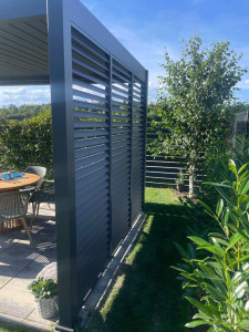 Dotaz na produkt Na splátky ještě dnesPro maximální využití bioklimatických pergol nabízíme také příslušenství v podobě panelu s horizontálními fixními lamelami pro zastínění bioklimatické pergoly a získání většího soukromí. Velmi pevná a stabilní konstrukce v antracitovébarvě RAL 7016, v matné povrchové úpravě. Panel a lamely jsou vyrobeny z vysoce kvalitního hliníku, který je ošetřen práškovou barvou, což zaručuje odolnost vůči povětrnostním vlivům. Panely je možné na sebe napojovat a vytvořit tak například jednu stranu plně zastíněnou fixními horizontálními lamelami pro dodatečné soukromí. Při použítí 3 panelů plně zastíníte stranu o rozměru 4 m. U ostatních velikostí nevyjde rozměr panelů přesně na rozměr celé strany. Panely lze samozřejmě použít na částečné zastínění nebo jako designový prvek. Panely jsou kompatibilní se všemi typy našich bioklimatických pergol. Je možné je instalovat jak na přední, tak i boční strany pergoly. Využití naleznou panely i u pergol s instalací do stěny, kde je možné panel přivrtat do zdi a vytvořit si tak za pomoci panelů částečně či plně zastíněnou stranu. Díky skvělým vlastnostem, detailnímu zpracování doplňků a modernímu designu bioklimatické pergoly využijete venkovní posezení mnohem častěji. TÜV CERTIFIKACE - Pergola byla testována a byla jí udělena certifikace TÜV, která je známkou kvality, bezpečnosti a spolehlivosti. Bezpečnost – TÜV se zaměřuje na testování výrobků s ohledem na jejich bezpečnost pro uživatele. Kvalita – Produkty a výrobní procesy musí splňovat specifické normy kvality, což zaručuje jejich vysokou úroveň. Ochrana životního prostředí – TÜV certifikace zahrnuje také kontrolu vlivu na životní prostředí včetně ekologické udržitelnosti výrobků. Shoda s normami – Produkt musí splňovat specifické národní i mezinárodní standardy a legislativu. Spolehlivost – Certifikace je známkou toho, že produkt nebo služba je spolehlivá a bezpečná pro dlouhodobé užívání.