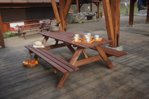 Zahradní sestava PIKNIK je zhotovena z kvalitního borovicového dřeva. Dřevo je mořené do kaštanové barvy. Sestava se skládá ze stolu a dvou lavic, které jsou připojeny ke stolu. Certifikát FSC zaručuje, že použité dřevo pochází ze šetrně obhospodařovaných lesů, ve kterých jsou dodržovány přísné ekologické asociální požadavky.