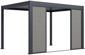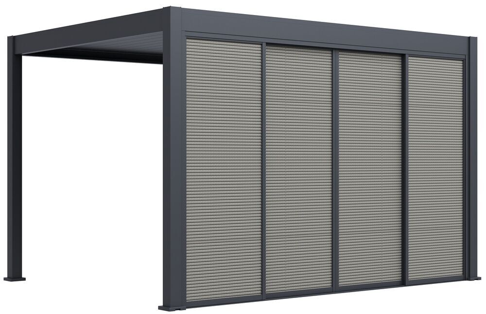 Dotaz na produkt Na splátky ještě dnesPro maximální využití bioklimatických pergol nabízíme také příslušenství v podobě posuvné zástěny s hliníkovou konstrukcí a výplní z textilenu, která poskytne ochranu před větrem, zároveň vytvoří i příjemný stín. Posuvná zástěna se skládá ze 4 posuvných panelů ve 2 kolejnicích. Pevná a stabilní konstrukce v antracitové barvě RAL 7016, v matné povrchové úpravě. Zástěna je vyrobena z vysoce kvalitního hliníku, který je ošetřen práškovou barvou, což zaručuje odolnost vůči povětrnostním vlivům. Zástěny jsou testovány proti větru a jsou odolné vůči silnému větru o rychlosti 62-74 km/h (stupeň 8). Zástěnu je možné jednoduše manuálně ovládat - posunovat panely dle potřeby. Zástěny jsou kompatibilní se všemi typy našich bioklimatických pergol. U pergol s instalací do stěny je možné zástěnu použít pouze na přední část, u bočních stran není instalace doporučena z důvodu možných nerovností zdi. Pergolu je také možné doplnit o stínící panely s fixními či sklápěcími horizontálními lamelami pro dodatečné soukromí a zastínění. Příslušenství k pergolám je možné instalovat kdykoliv, není nutná montáž již během instalace samotné pergoly. Díky skvělým vlastnostem, detailnímu zpracování doplňků a modernímu designu bioklimatické pergoly využijete venkovní posezení mnohem častěji. TÜV CERTIFIKACE - Pergola byla testována a byla jí udělena certifikace TÜV, která je známkou kvality, bezpečnosti a spolehlivosti. Bezpečnost – TÜV se zaměřuje na testování výrobků s ohledem na jejich bezpečnost pro uživatele. Kvalita – Produkty a výrobní procesy musí splňovat specifické normy kvality, což zaručuje jejich vysokou úroveň. Ochrana životního prostředí – TÜV certifikace zahrnuje také kontrolu vlivu na životní prostředí včetně ekologické udržitelnosti výrobků. Shoda s normami – Produkt musí splňovat specifické národní i mezinárodní standardy a legislativu. Spolehlivost – Certifikace je známkou toho, že produkt nebo služba je spolehlivá a bezpečná pro dlouhodobé užívání.