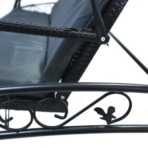 Zahradní houpačka s kovovou konstrukcí a umělým ratanem. Součástí je i pohodlná poduška v šedé barvě. Umělý ratan vyniká svou odolností proti UV záření,je bezúdržbový a velice lehký. Umělý ratan se vyrábí z polyethylenu, což zajišťuje větší pevnost, stálobarevnost a celkovou životnost materiálu.