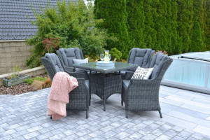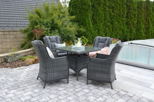 Luxusní sestava nábytku z umělého ratanu a hliníkové kostry. I když se umělý ratan podobá přírodnímu, je mnohem odolnější. Obecně lze říci, že je pružnější a je méně pravděpodobné, že se poničí.Umělý zahradní ratanový nábytek vyniká snadnou údržbou a velkou odolností vůči nepřízni počasí. Umělý ratanový nábytek se neloupe, nevznikají na něm nevzhledné praskliny, je stálobarevný po mnoho let. Jestliže nechcete mít obývací pokoj laděný ve stejném duchu jako ostatní, ratanový nábytek je možným řešením, jak se odlišit i v interiéru.Luxusní polyratanový nábytek má opravdu velmi široké využití. Je vhodný pro vnitřní i venkovní prostory, zahrady, terasy, zimní zahrady, balkony, kanceláře, jednací místnosti, recepce a další nebytové i bytové prostory. Nemusíte nic skládat ani montovat - nábytek je již připraven k okamžitému použití. Podušky jsou odnímatelné. Luxusní souprava z kvalitního umělého ratanu, který odolává UV zářenía teplotě od +50°C do -10°C.Kostra je hliníková + prášková barva. Ratan: 6,5mm půlkulatýDeska stolu: 5mm tvrzené skloPodušky:výplň-5 cm molitan, látka-230g/m2 polyester - spodní podušky jsou vybaveny zipem, což umožňuje snadné praní povlaku