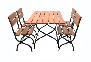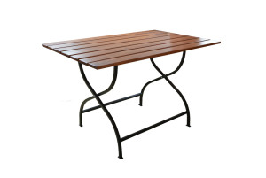 Dřevěný skládací stůl v hnědé barvě + kovová kostra. Díky kombinaci kovu a dřeva je stůl velmistabilní a odolný. Stůl se dá jednoduše složit a uskladnit. Certifikát FSC zaručuje, že použité dřevo pochází ze šetrně obhospodařovaných lesů, ve kterých jsou dodržovány přísné ekologické asociální požadavky.