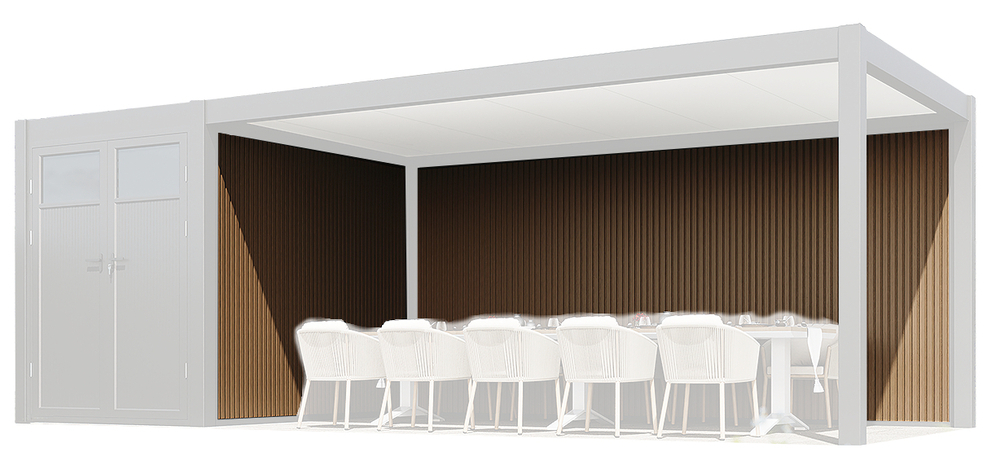 Dotaz na produkt Na splátky ještě dnesDoplňte svoji bioklimatickjou pergolu či přístřešek PRESTIGE o WPC stěnu a získejte dodatečnou ochranu proti povětrnostním vlivům i stylový designový prvek. Stěna je vhodná pro strany o rozměru 3 metry (přesný rozměr prostoru mezi sloupky 2 791 mm). Kombinace hliníkového rámu a WPC panelu o síle 2,8 cm zaručuje odolnost a dlouhou životnost. Stěna vylepšuje funkčnost přístřešku či pergoly a také esteticky ladí s exteriérem. WPC panel (Wood-Plastic Composite) je moderní kompozitní materiál kombinující dřevo a plast, který nabízí skvělé vlastnosti obou těchto materiálů. Díky dřevité složce si WPC panely uchovávají přírodní vzhled dřeva, zatímco plastová část dodává zvýšenou odolnost vůči vlhkosti, hmyzu, plísním a UV záření. Síla 2,8 cm navíc zajišťuje pevnost a stabilitu, čímž se WPC panely stávají ideální volbou pro venkovní použití. KLÍČOVÉ VLASTNOSTI Dodatečná ochrana: Zabraňuje pronikání větru, deště a dalších povětrnostních vlivů, čímž rozšiřuje možnosti využití přístřešku či pergoly. Odolnost a dlouhá životnost: WPC panel s hliníkovým rámem je vysoce odolný proti vlhkosti, UV záření, plísním a hmyzu. Nízké nároky na údržbu: Stěna nevyžaduje pravidelné ošetřování jako přírodní dřevo, nekroutí se ani nešedne. Stylový vzhled: Kombinuje přírodní estetiku dřeva s moderním designem a elegantní povrchovou úpravou. Stabilita a pevnost: Díky síle 2,8 cm poskytuje konstrukci pevnost a přináší pocit bezpečí.