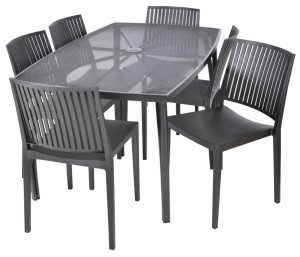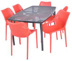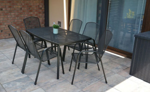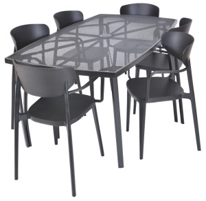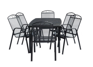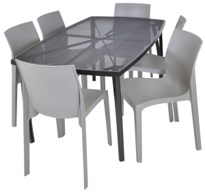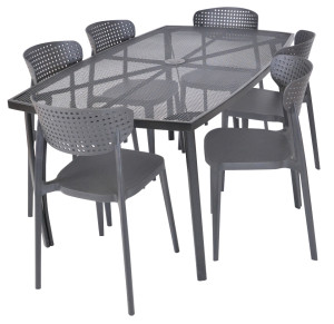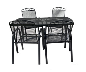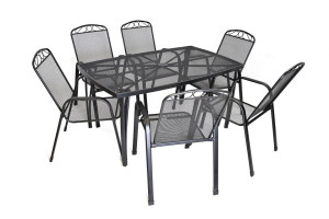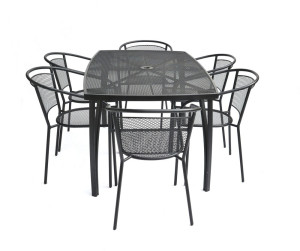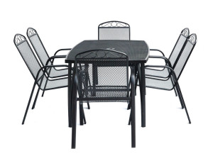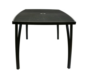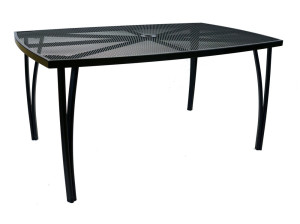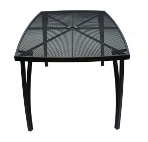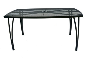 Kovový zahradní stůl s drátěnou vrchní deskou obdélníkového tvaru. Výborně se kombinuje se všemi typy kovového zahradního nábytku. Je lehce udržovatelný a omyvatelný. Uprostřed stolu je otvor pro slunečník. Stůl je vyrobený z tahokovu. Jedná se o kovovou mřížovinu, kdy je plech během výroby střižen a natažen a dochází tak ke vzniku typického mřížkovaného provedení. Díky tomuto materiálu se jedná o odolný a praktický výrobek.